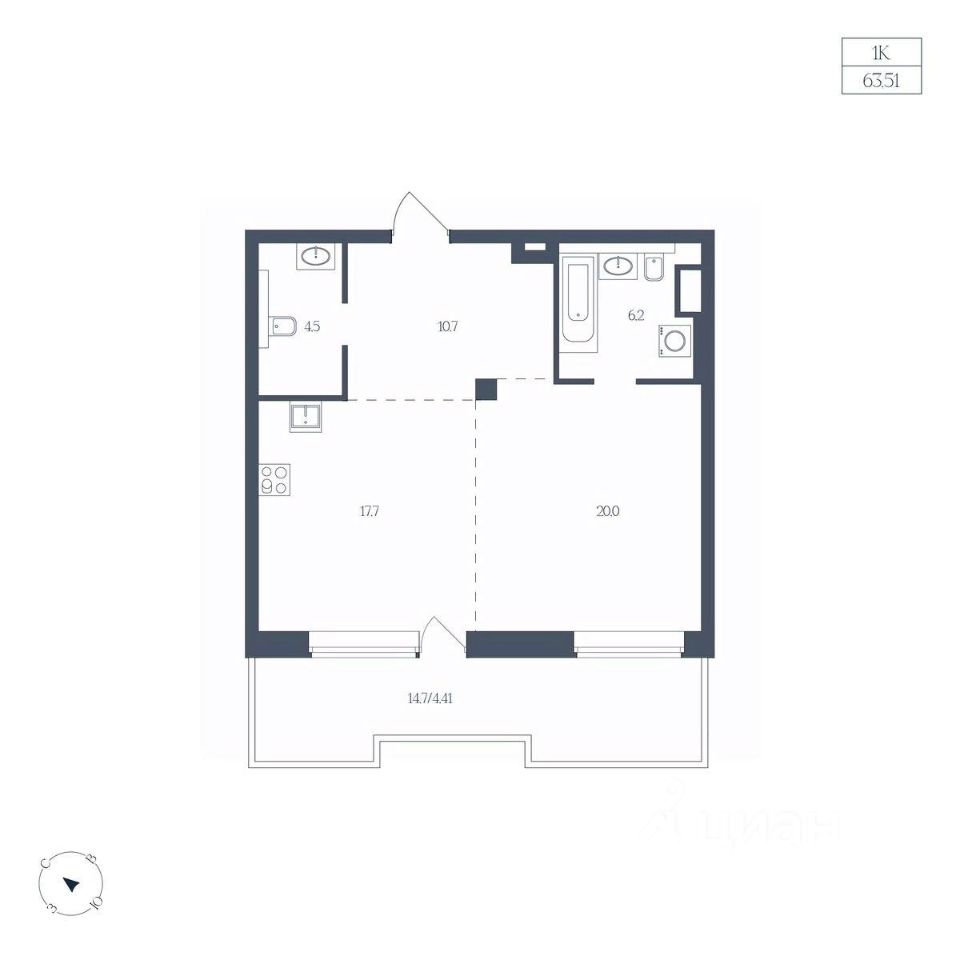 Общая площадь63,51 м2