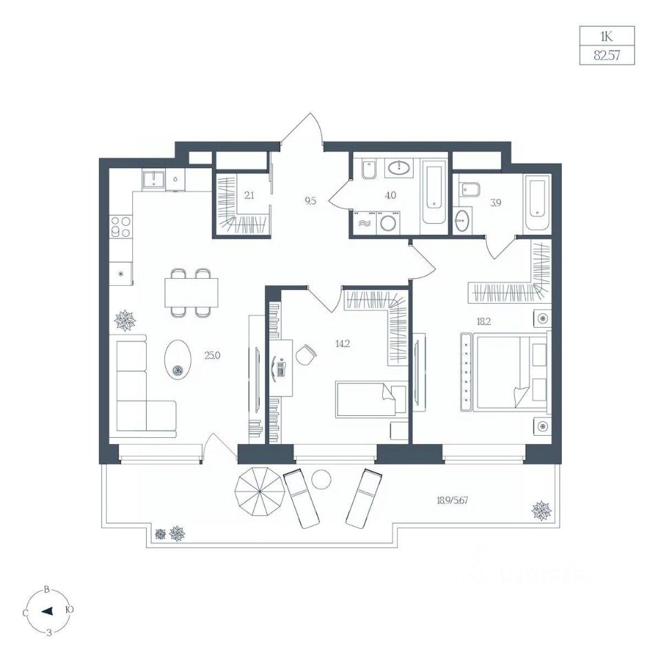 Общая площадь82,57 м2