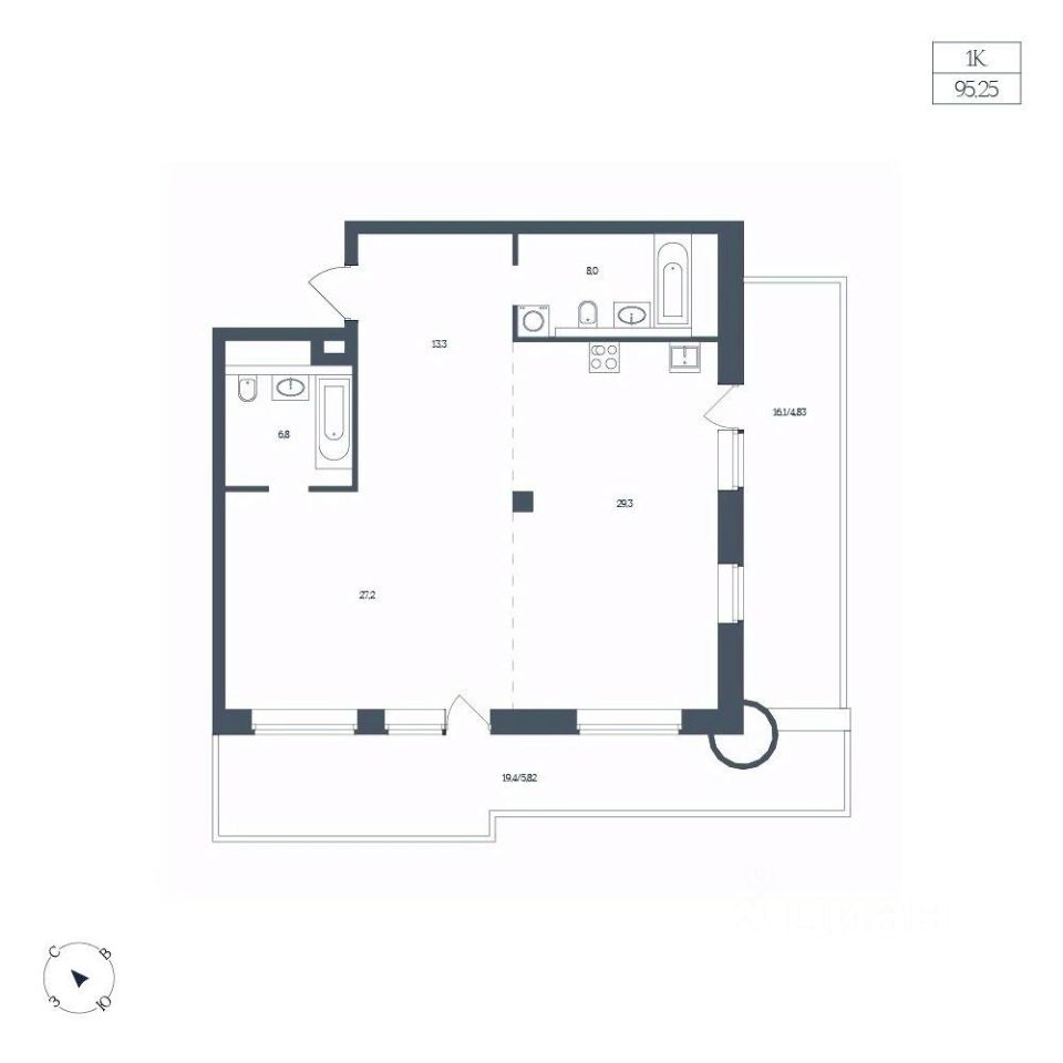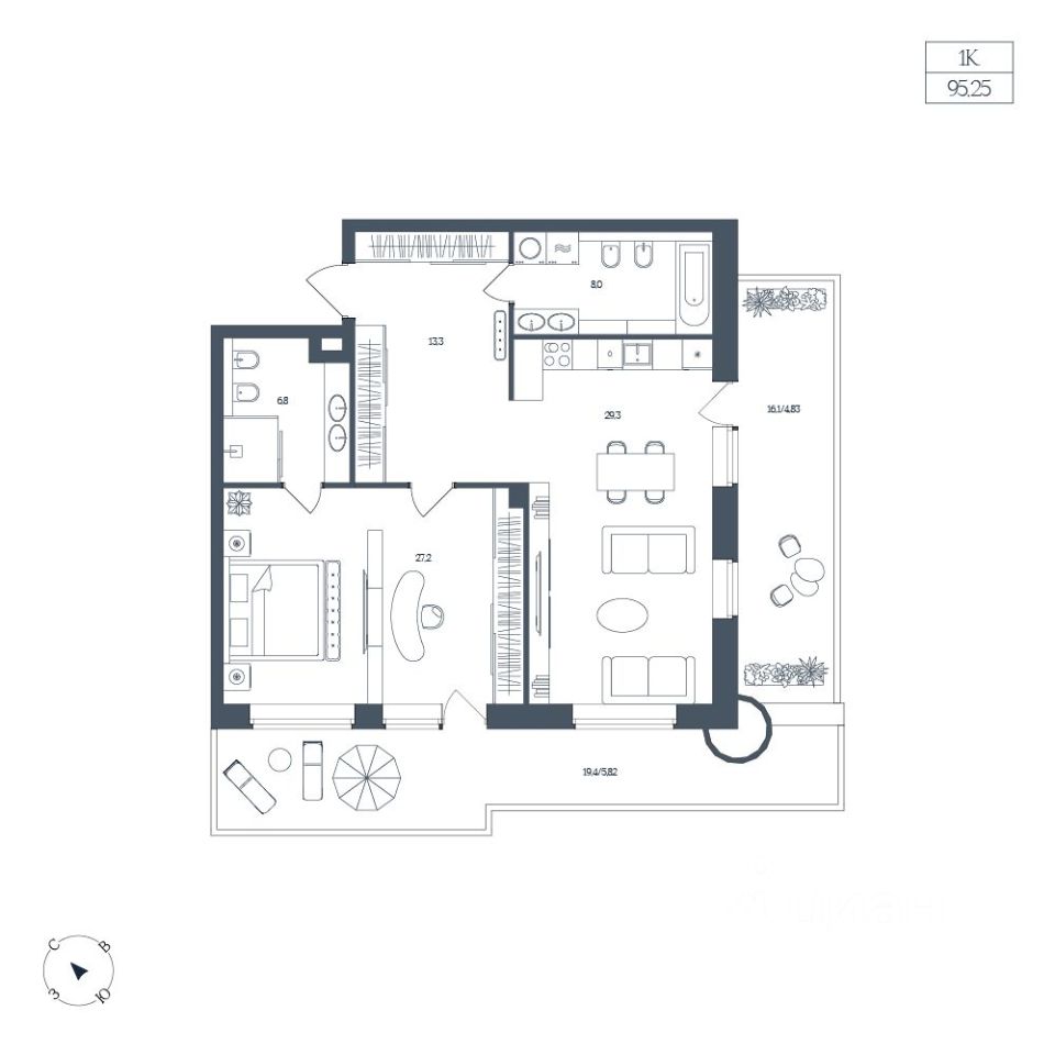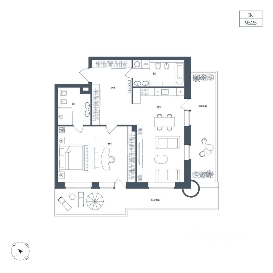 Общая площадь95,25 м2