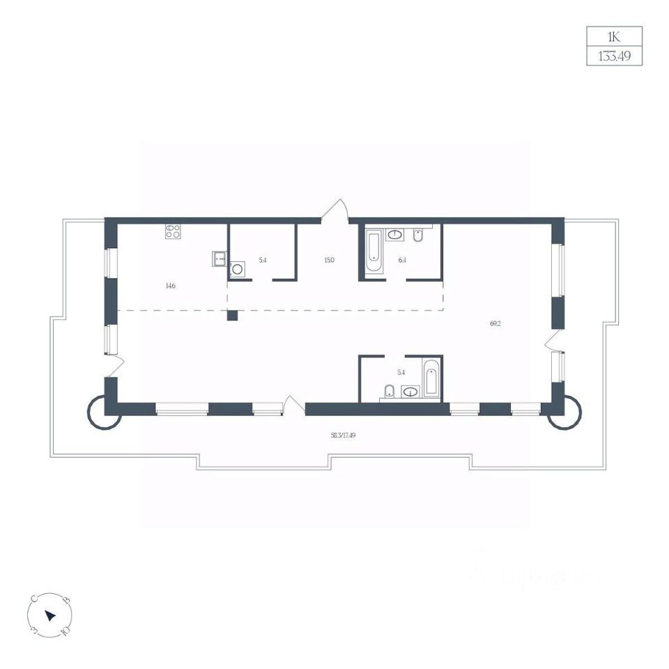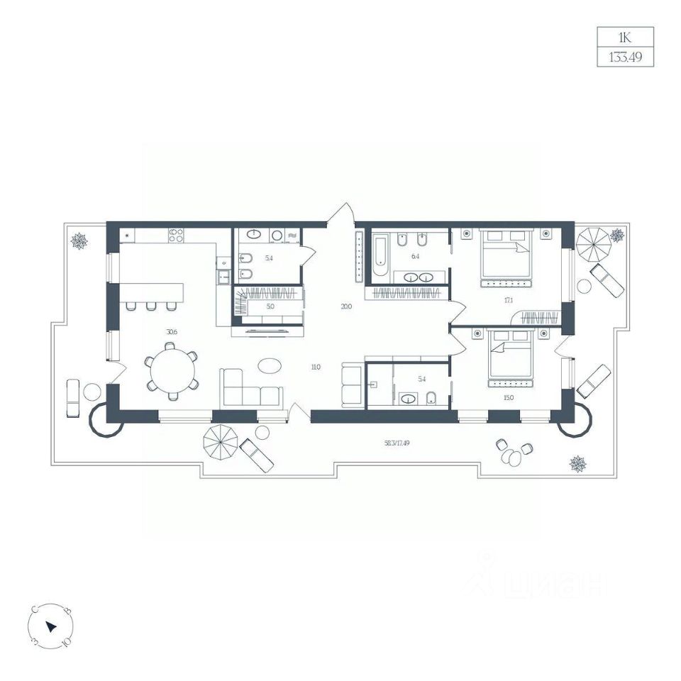 Общая площадь133,49 м2