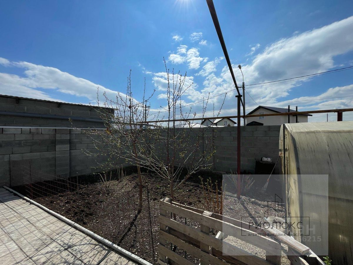 Территория и инфраструктура: - Перед домом территория выложена тротуарной плиткой. - Есть гараж, две теплицы, посадки малины и клубники. - По периметру участка - шлакоблочный забор высотой 2,5 метра. - Рядом с посёлком остановка маршрутного такси 51. - Неподалёку детская площадка, магазин ''Монетка'' и аптека.