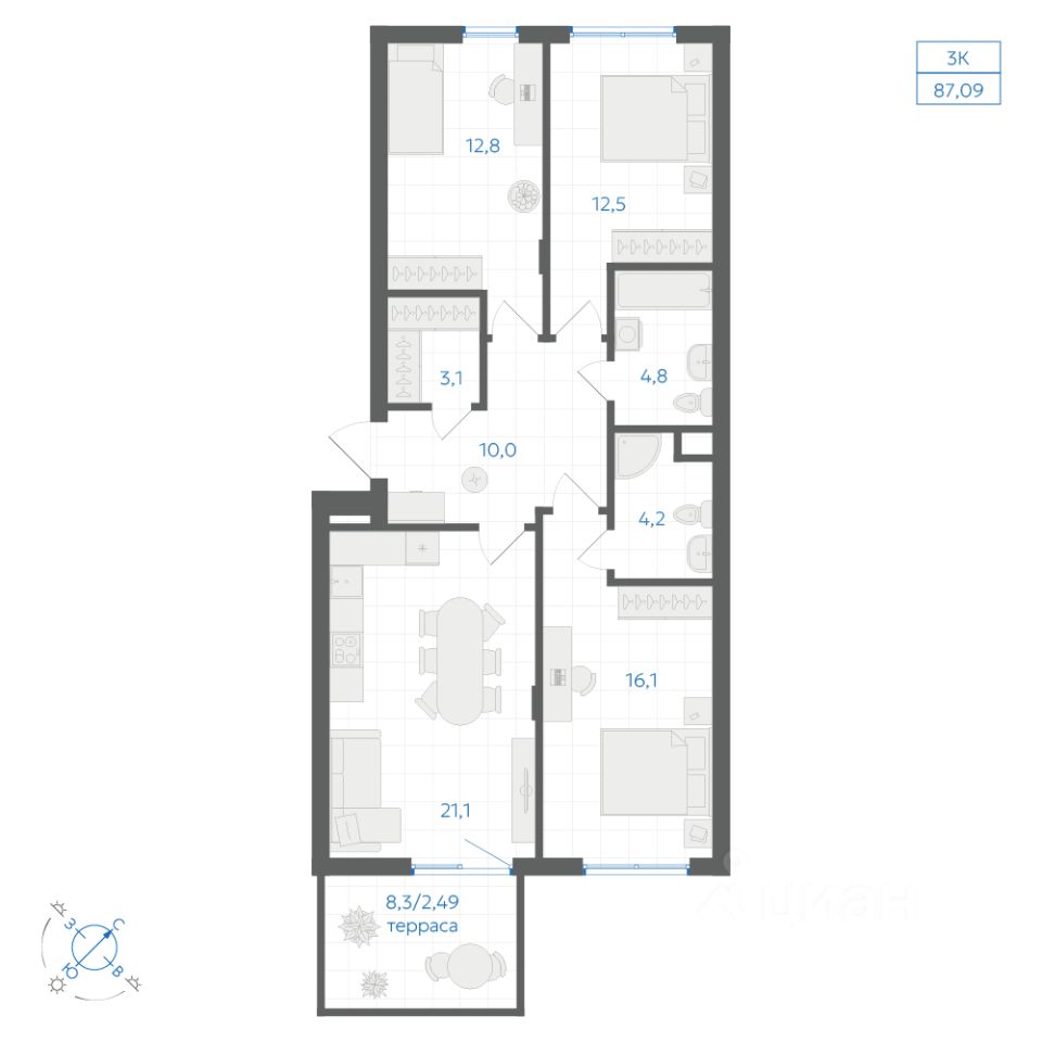 Общая площадь87,09 м2