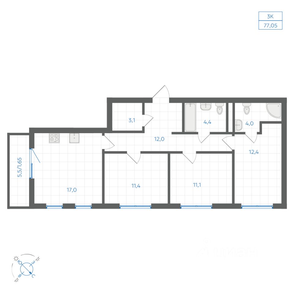 Общая площадь77,05 м2