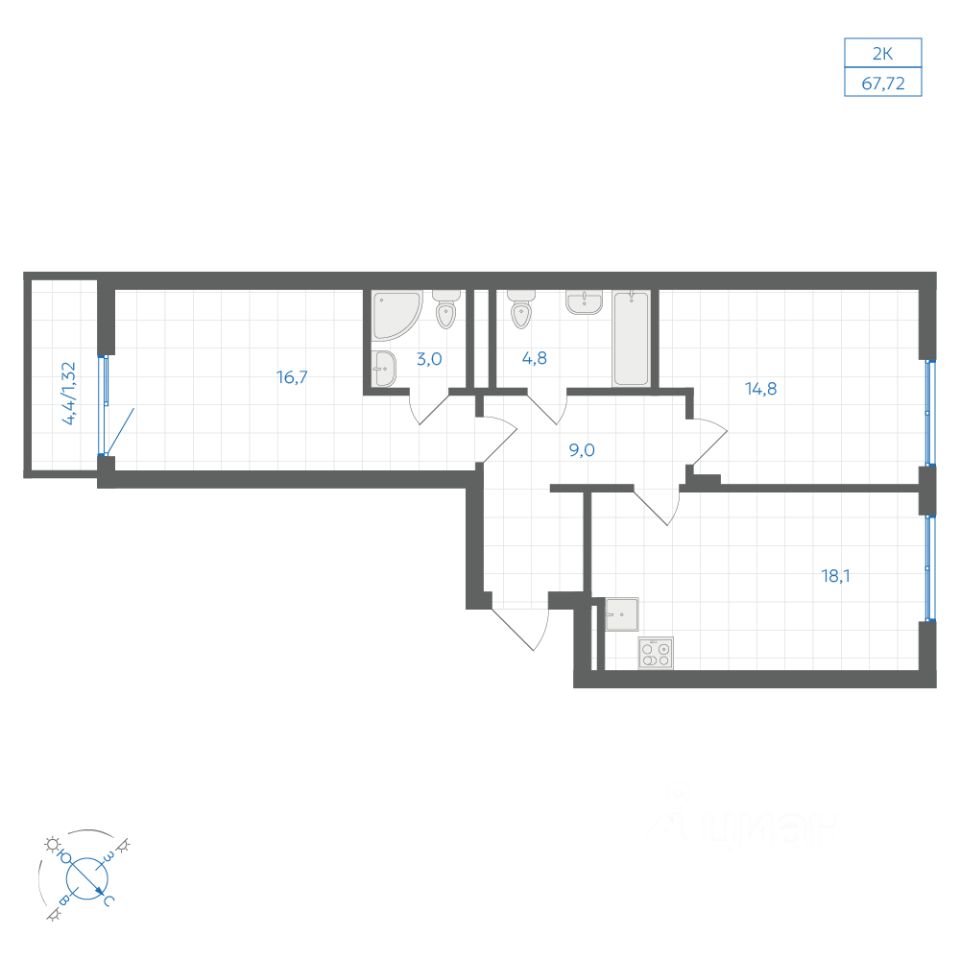 Общая площадь67,72 м2