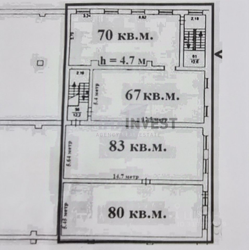Высота потолков от 3м до 4,7м., отдельная входная группа, круглосуточный доступ, Помещение состоит из 4х больших комнат, пол выполнена стяжка, стены под покраску.
