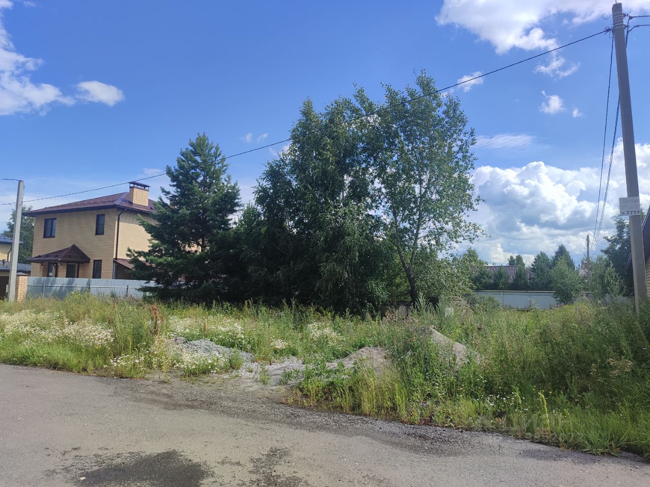 На участке проходит газовая труба, электричество, есть капитальный фундамент площадью 120 м.кв., с трех сторон окружен забором из профлиста. Улица полностью застроена , с трех сторон проживают соседи. Поселок полностью благоустроен, есть магазины, все дороги и улицы заасфальтированы.