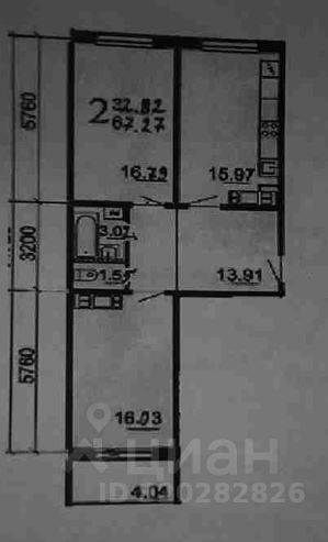 Общая площадь: 67,2 м² Жилая площадь: 32 м² (2 комнаты по 16 м²) Кухня: 16 м² | Прихожая: 14 м² — с вместительным радиусным шкафом