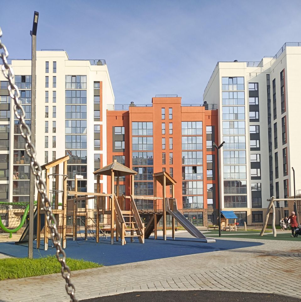 Закрытый двор с современной детской площадкой и прогулочной зоной.