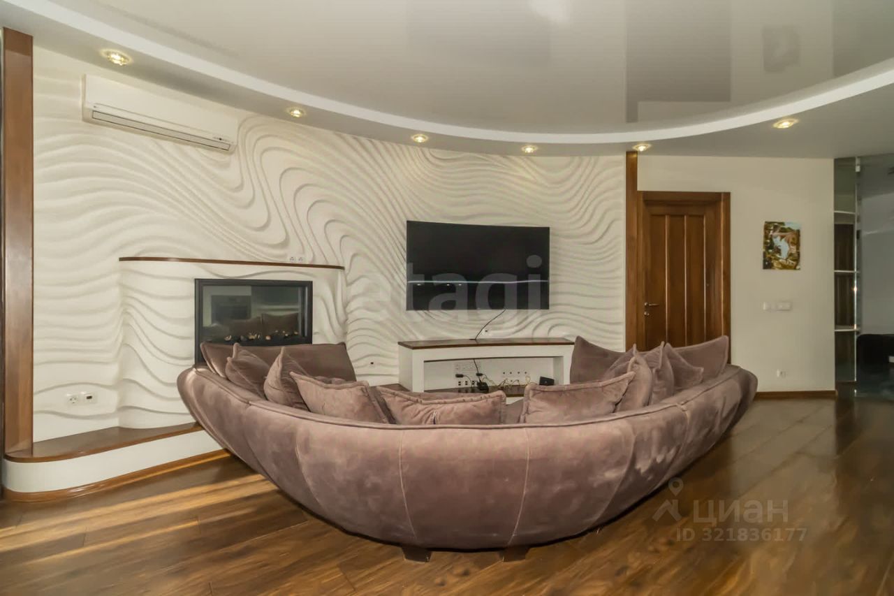 В отделке использованы качественные материалы, применены детализированные элементы дизайна, включая лепнину. Планировка: гостиная с кухонной зоной, 3 комнаты, 2 санузла (с ванной и c душевой кабинoй) с caнтeхникой ideаl standаrd. Пaнopaмные oкнa в гоcтинoй, cпальнe и кабинeтe. Лепнина в гocтиной в виде вoлны на 2-х стенах, фреска цветная. Установлен электрический камин для уютных вечеров в кругу семьи. В стоимость включена вся встроенная техника Bosch и мебель, в том числе четыре гардеробных системы.