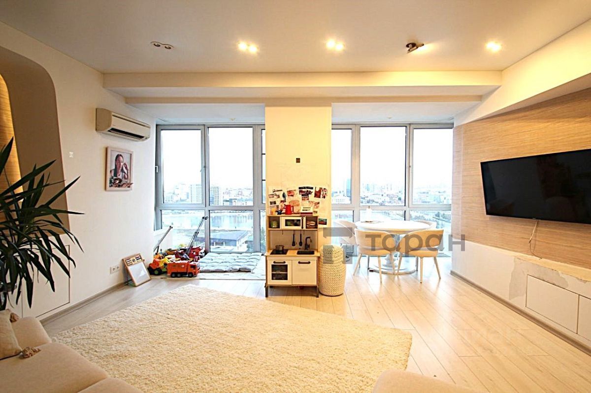 ЦЕНА СНИЖЕНА ПОКА ЖДЕТ ВСТРЕЧНЫЙ ОБЪЕКТ!!! К продаже предлагается уникальная видовая квартира в ЖК ''Кировский'', общей площадью 99,6 кв. м. ЖК в самом центре города! Есть подземный паркинг, возможно приобрести места как в собственность так и в аренду. В квартире сделан дорогостоящий дизайнерский ремонт, который подчеркивает ее уникальность и изящество. ПЛАНИРОВКА: - прихожая - гардеробная, из которой можно сделать светлую и просторную спальню - большая гостиная с обеденной зоной - кухня - спальня - санузел МЕБЕЛЬ И ТЕХНИКА: - обеденная зона - диван - телевизор - кухонный гарнитур со встроенной немецкой техникой и шикарной деревянной столешницей - стиральная машина Asko - каменная тумба в ванной - кондиционеры в каждой комнате - шторы блэкаут в спальне - встроенный шкаф в спальне - двуспальная кровать - гардеробные системы в потолок с доводчиками для комфортного закрывания - диван в гардеробной комнате Вся мебель и техника остается в подарок новым собственникам! ОСОБЕННОСТИ: Панорамное остекление в гостиной, откроет для вас вид на прекрасную часть города и все разнообразие архитектуры разных эпох. В вечернее время вы не найдете лучшего место для созерцания городских огней и бесподобных салютов. Звоните и записывайтесь на просмотр, квартира оставляет незабываемые впечатления и вы точно захотите остаться здесь)