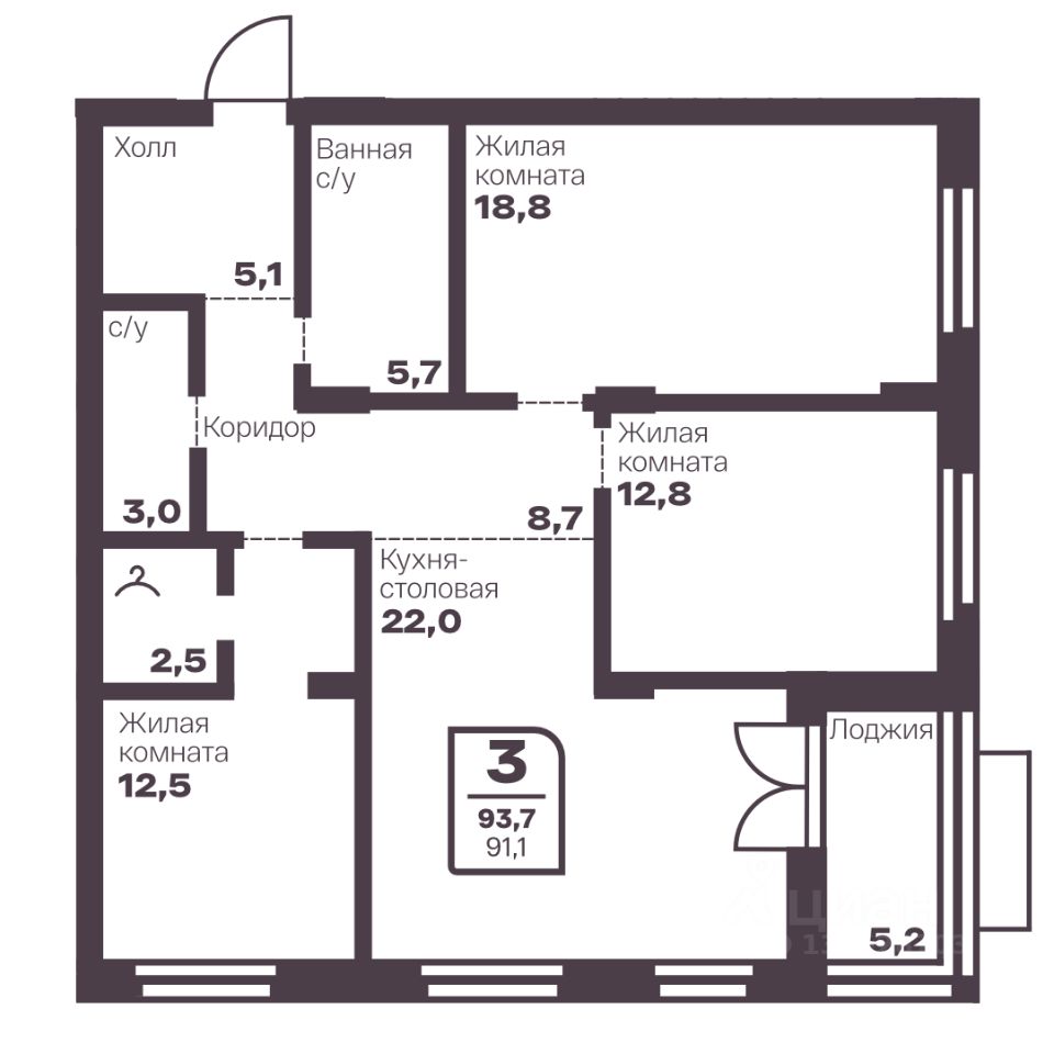 Общая площадь91,1 м2