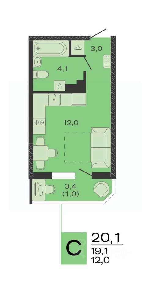 Общая площадь20,1 м2