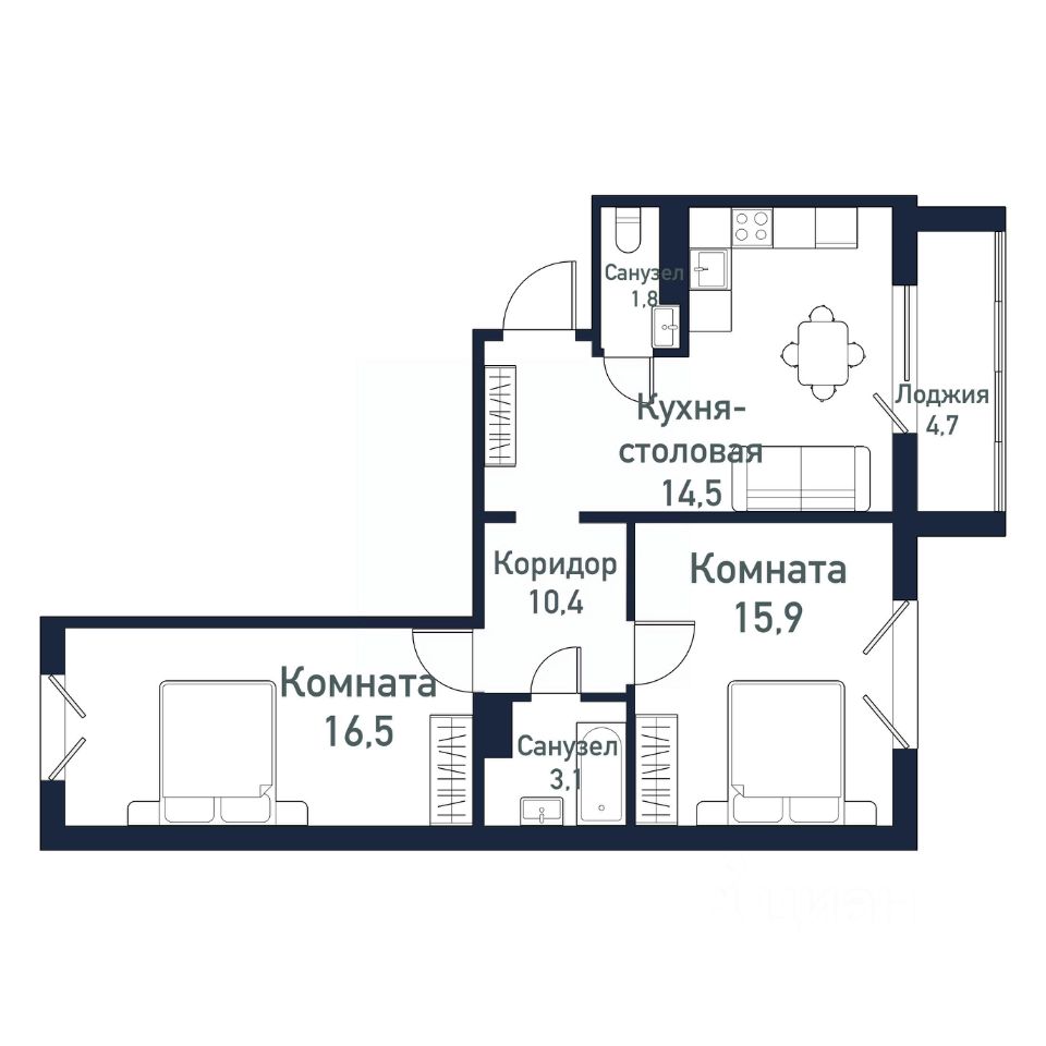 Общая площадь62,1 м2