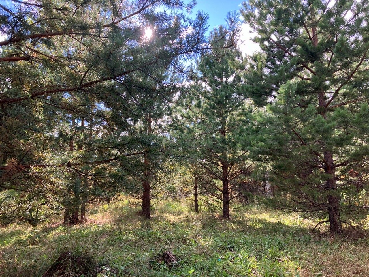 На участке большое количество взрослых сосен и других деревьев - идеально для домика в лесу! Есть поляны для дома/дачи/бани и небольших построек, парковки. Растут боярышник, дикая яблоня (яблоки вкусные), много земляники.