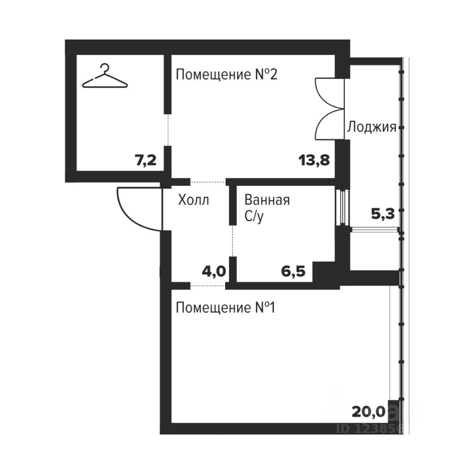 Общая площадь51,5 м2