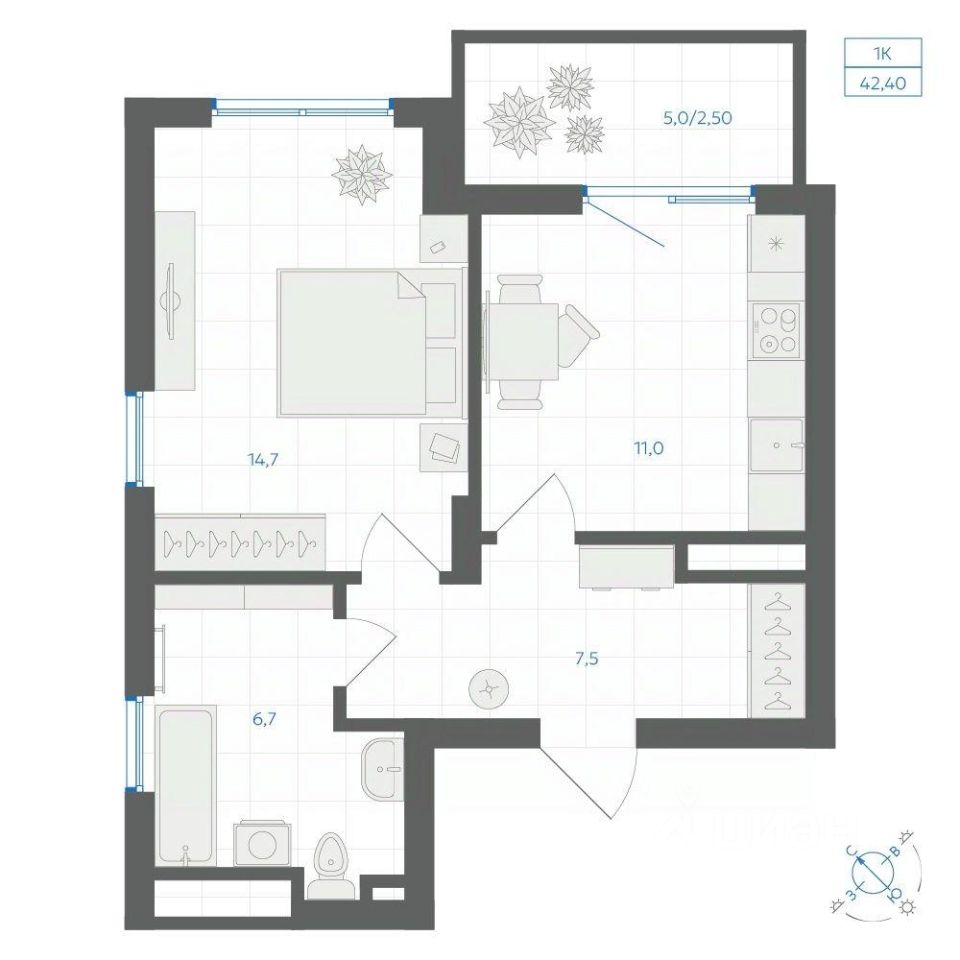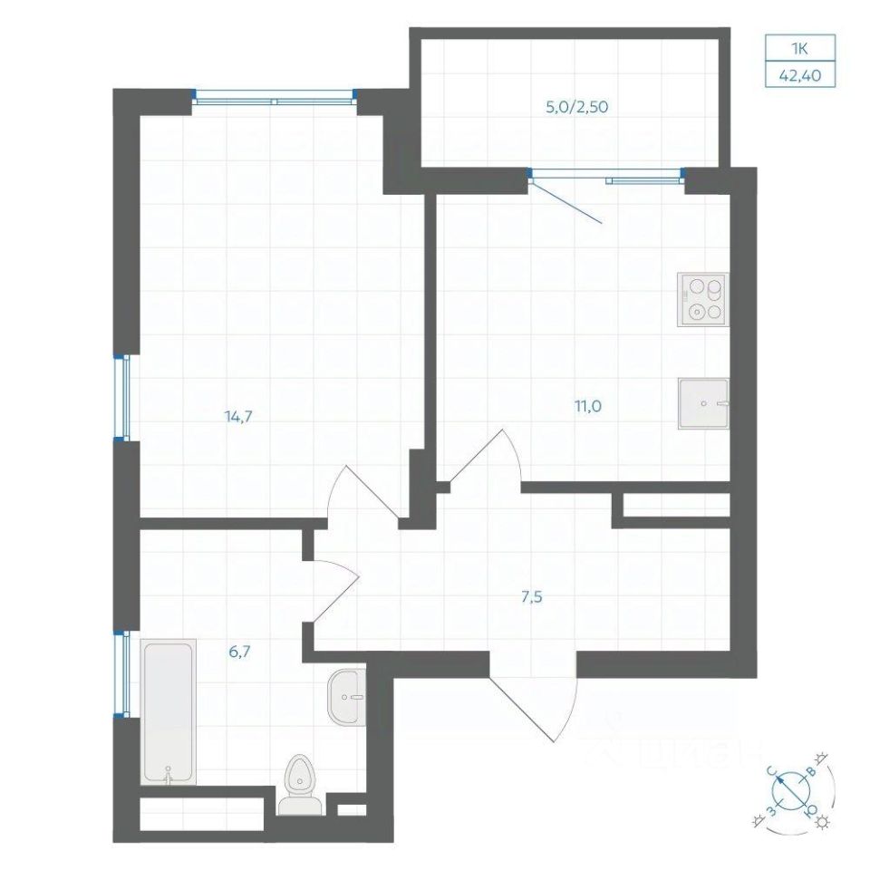 Общая площадь42,4 м2