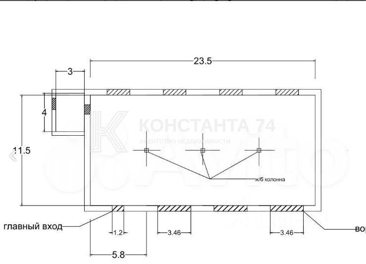 Высота потолка 4 м.