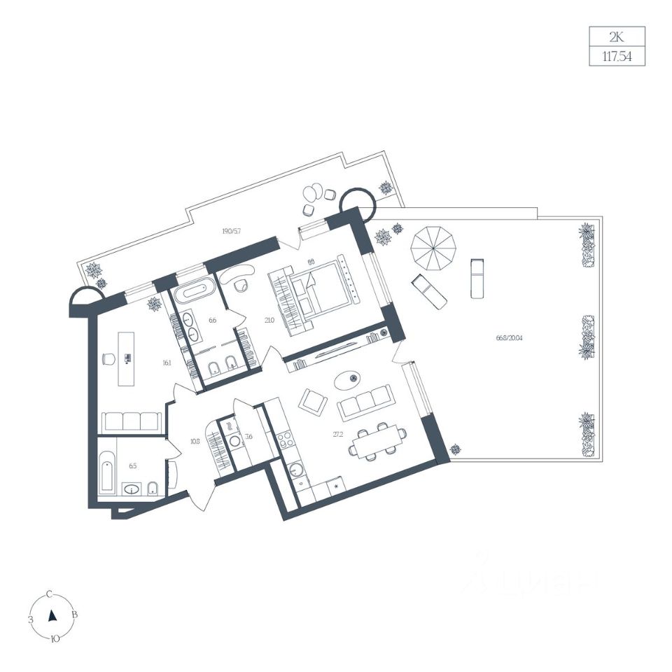 Общая площадь117,54 м2