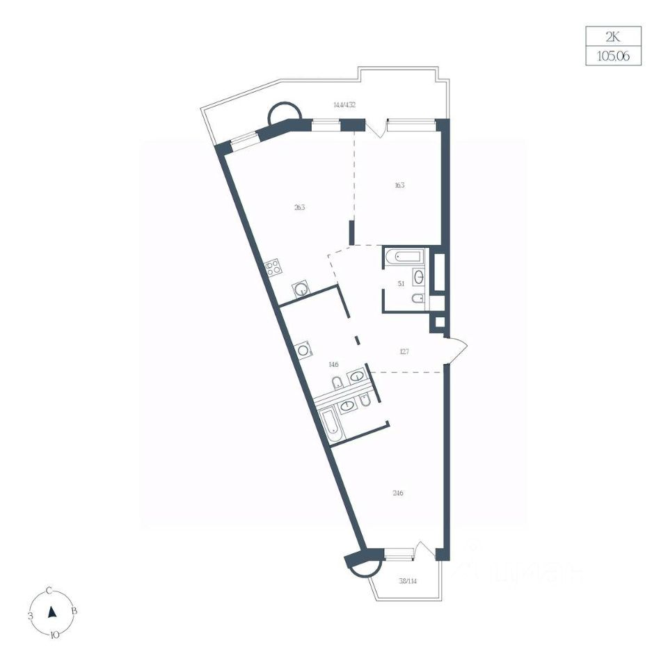 Общая площадь105,06 м2