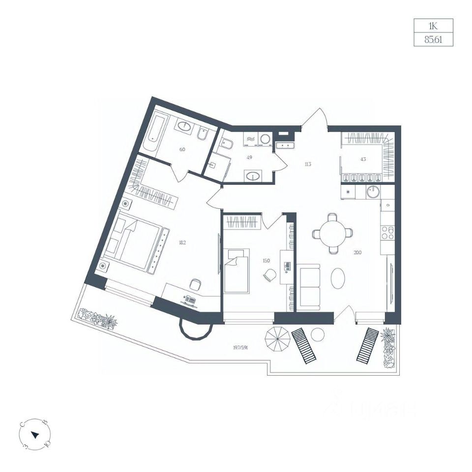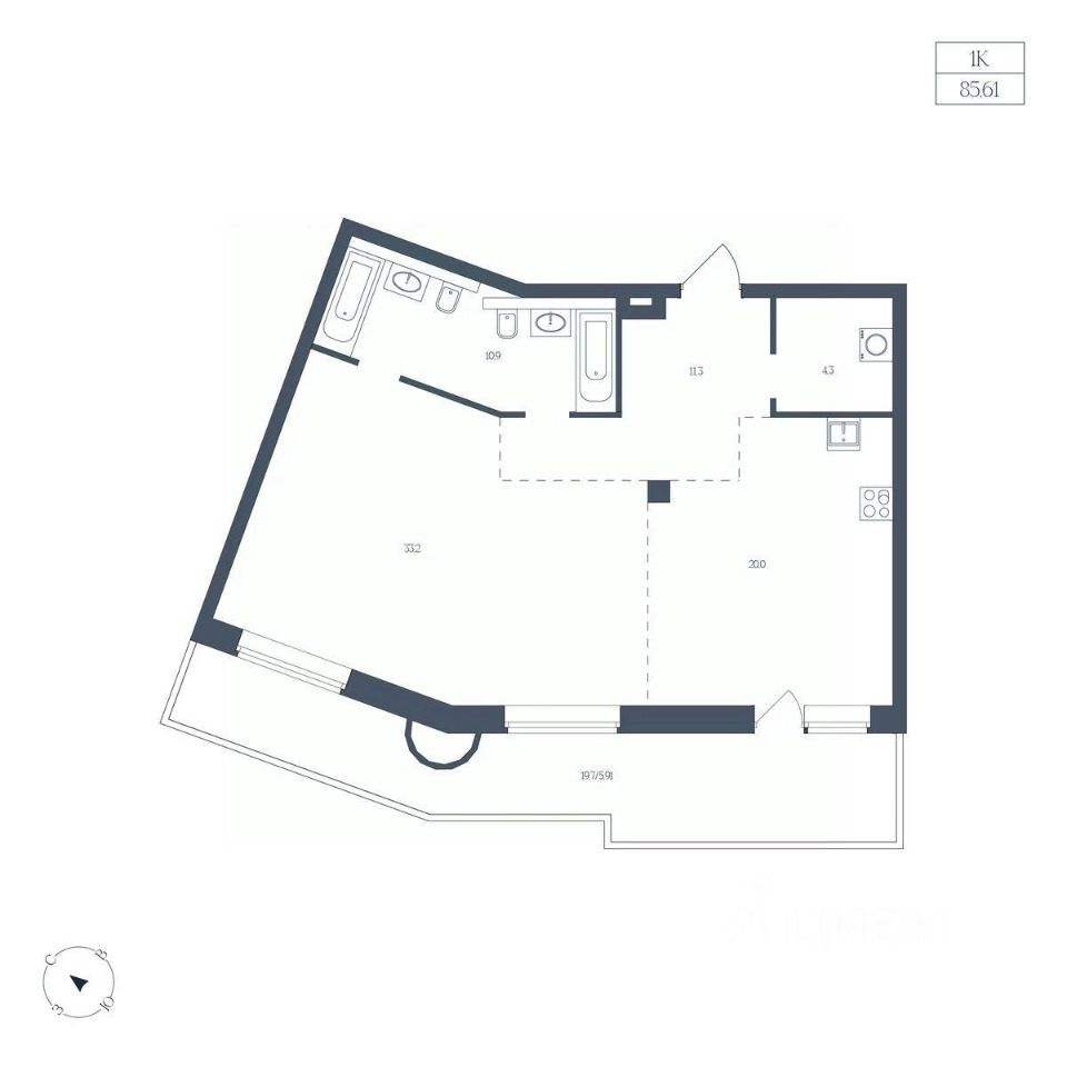 Общая площадь85,61 м2