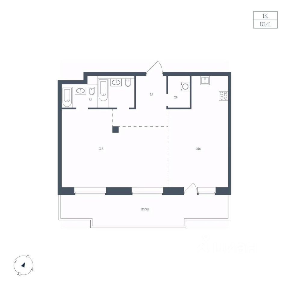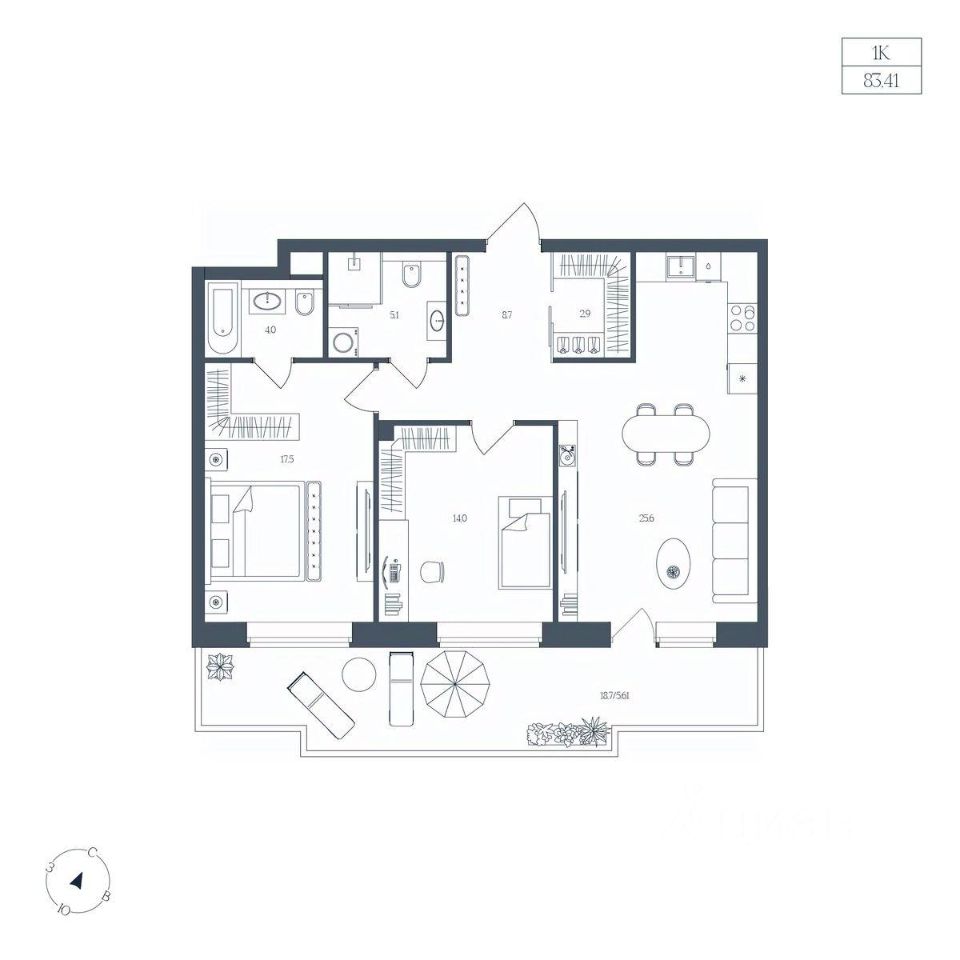 Общая площадь83,41 м2