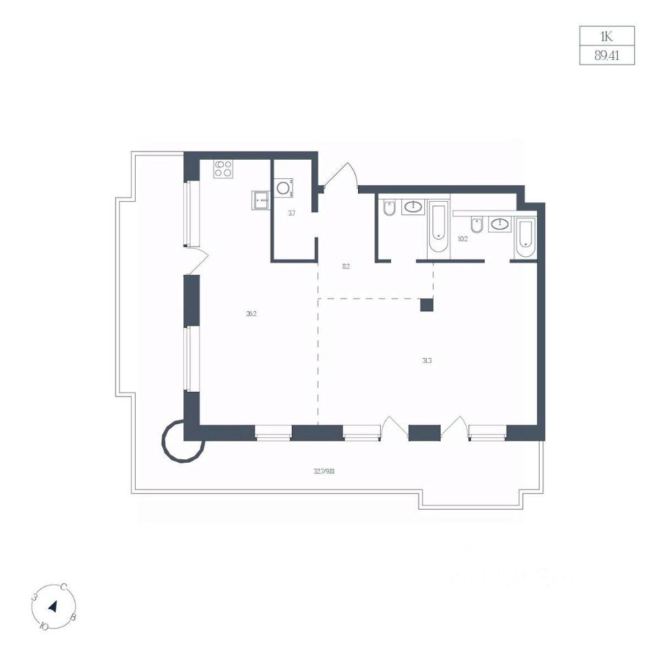 Общая площадь89,41 м2
