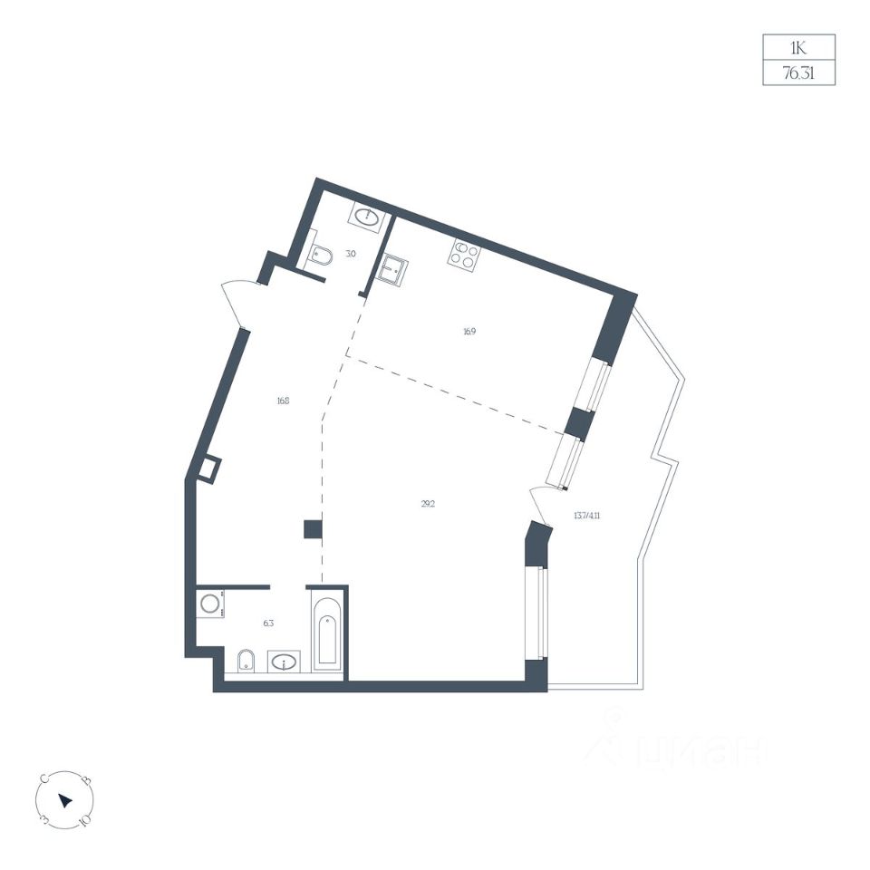 Общая площадь76,31 м2