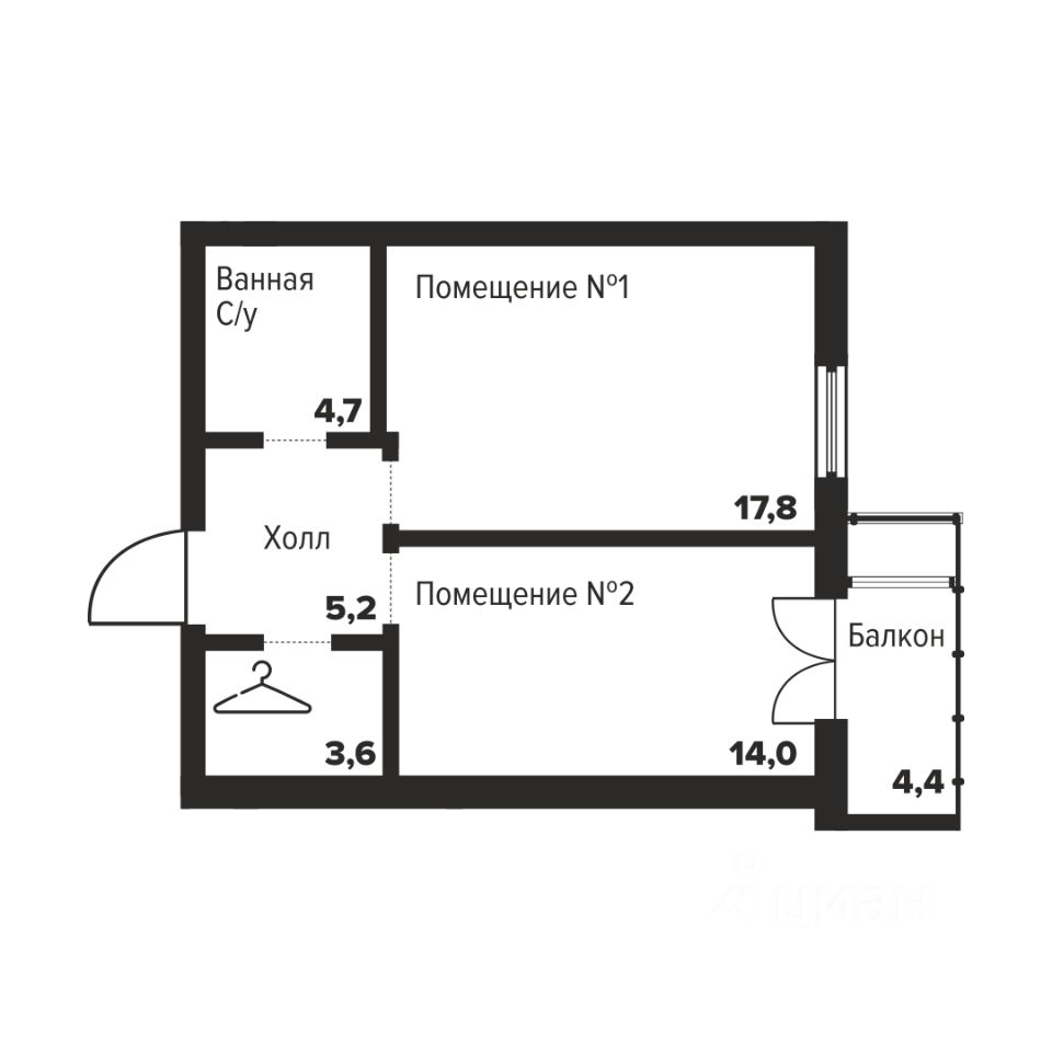 Общая площадь45,3 м2