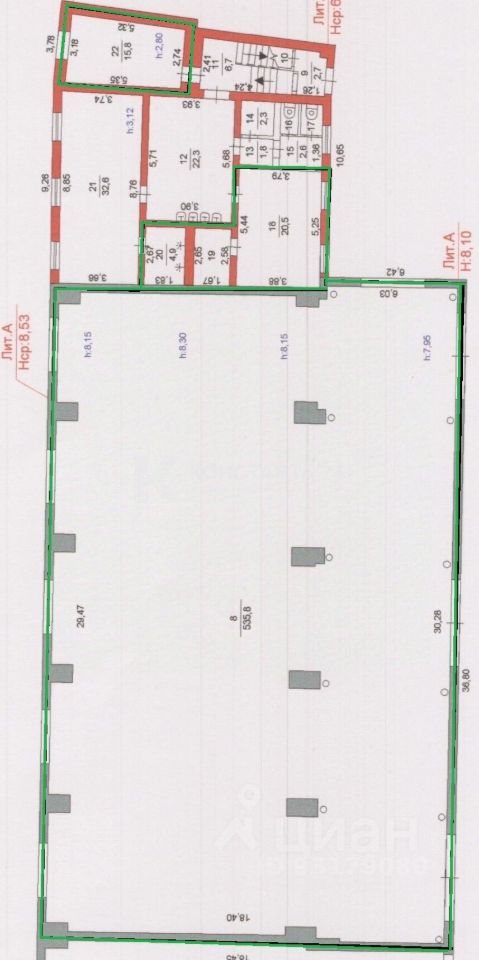 Основная производственная площадь 535,8 м2 по 550 руб с НДС + отопление + эл.энергия