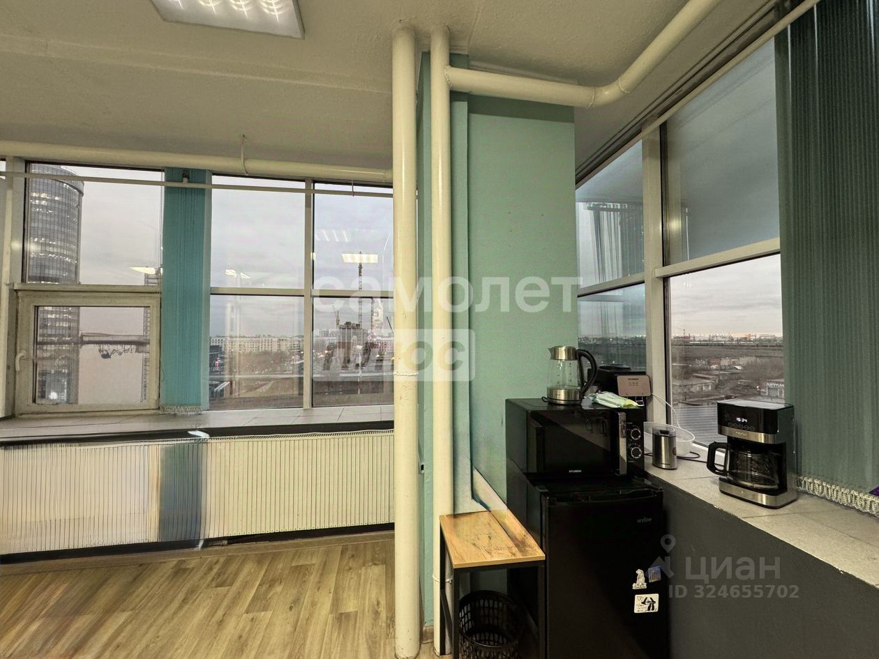 В помещении большие окна.