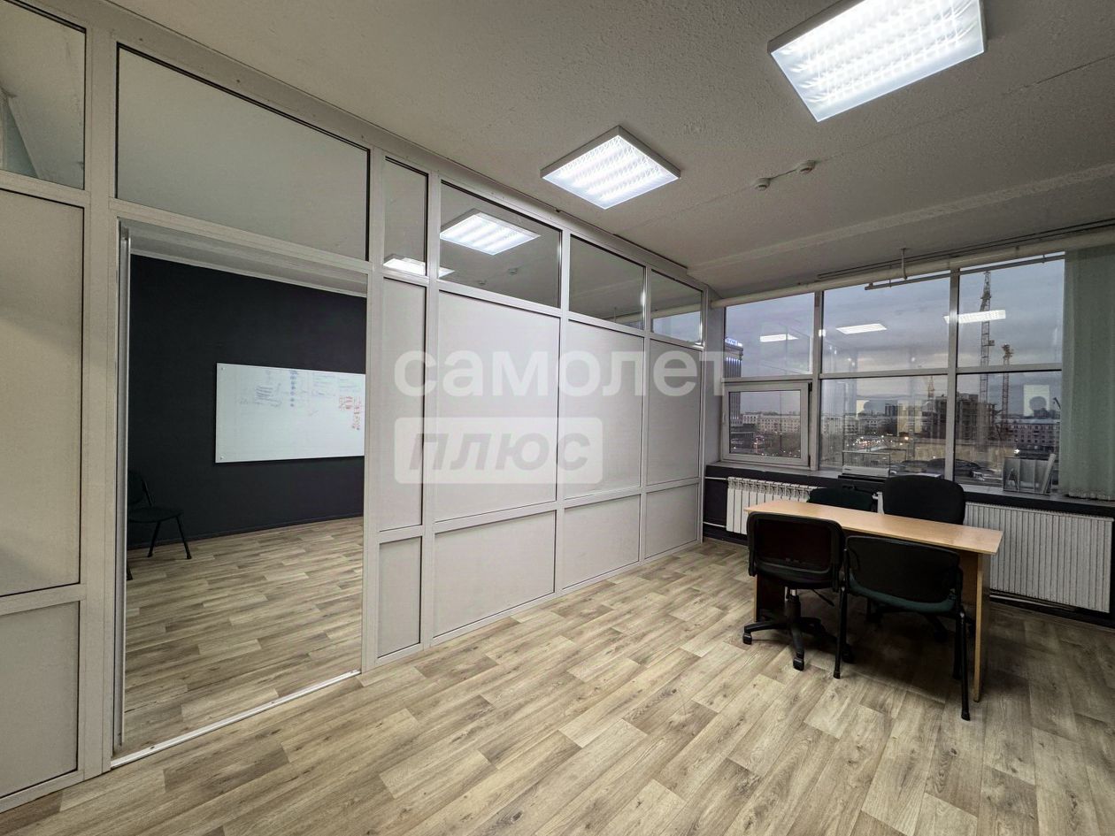 Помещение изначально свободной планировки, в данный момент разделено на 4 кабинета легко - возводимыми перегородками.