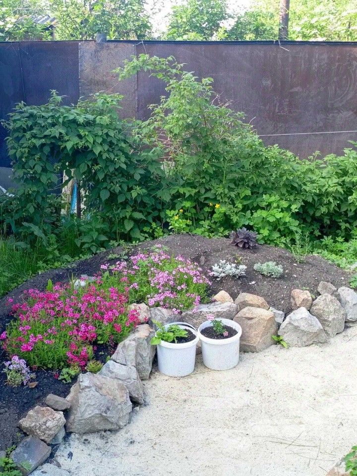 Сад ухоженный. Есть два больших бака под воду.
