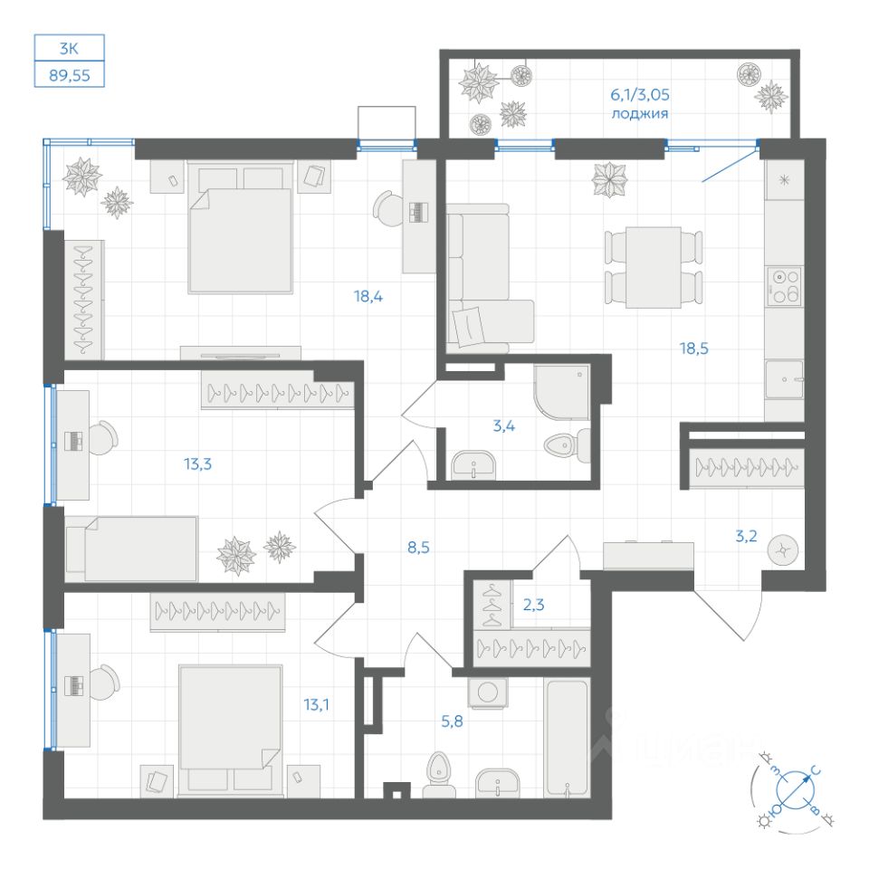 Общая площадь89,55 м2