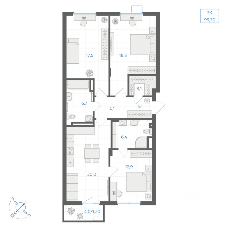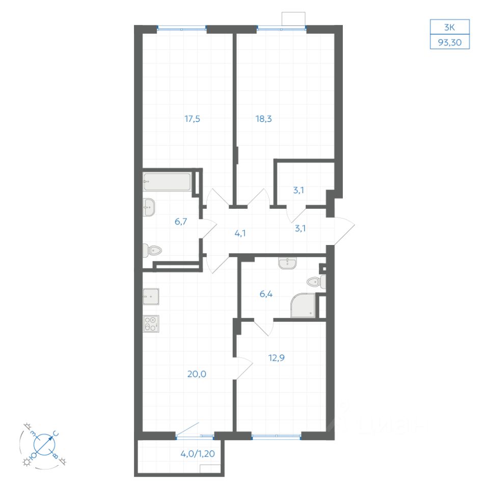 Общая площадь93,3 м2