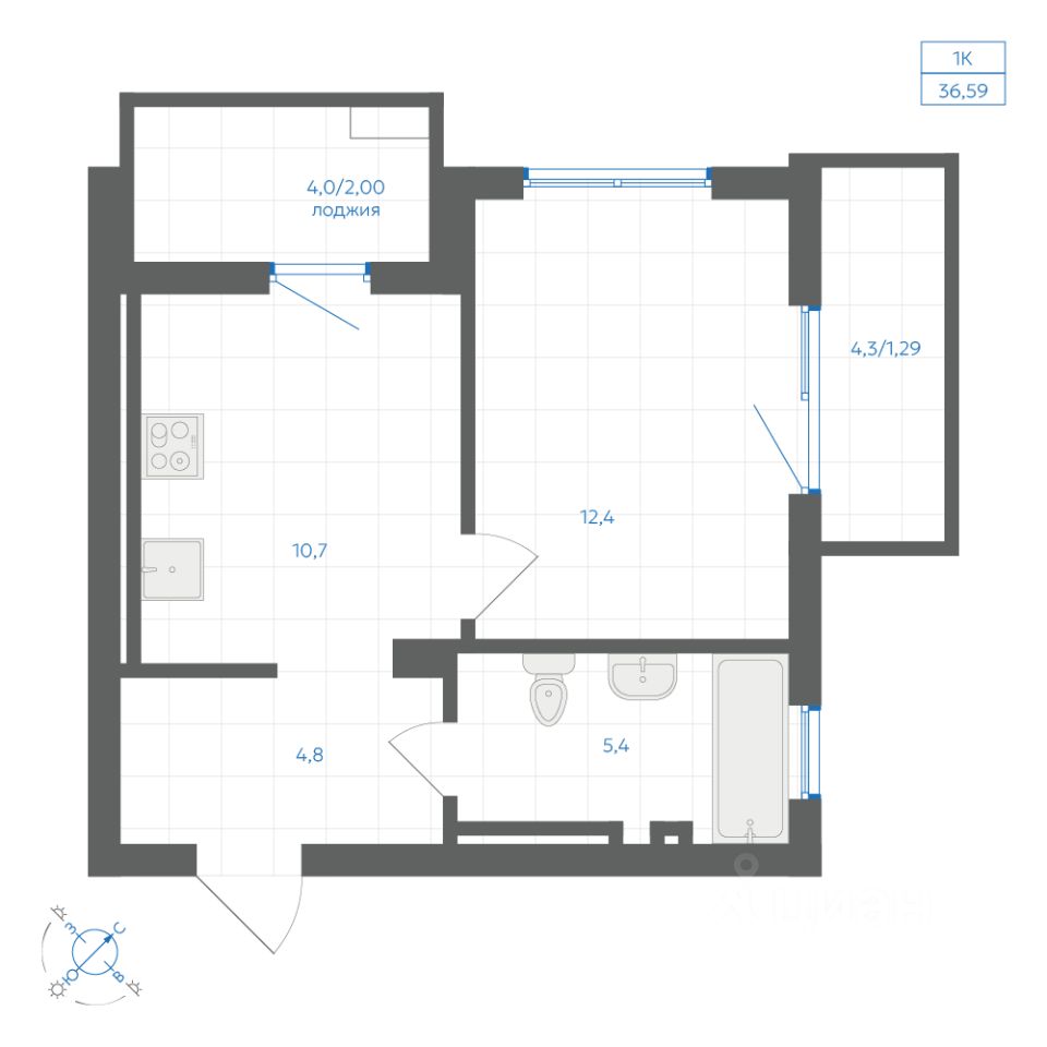 Общая площадь36,59 м2