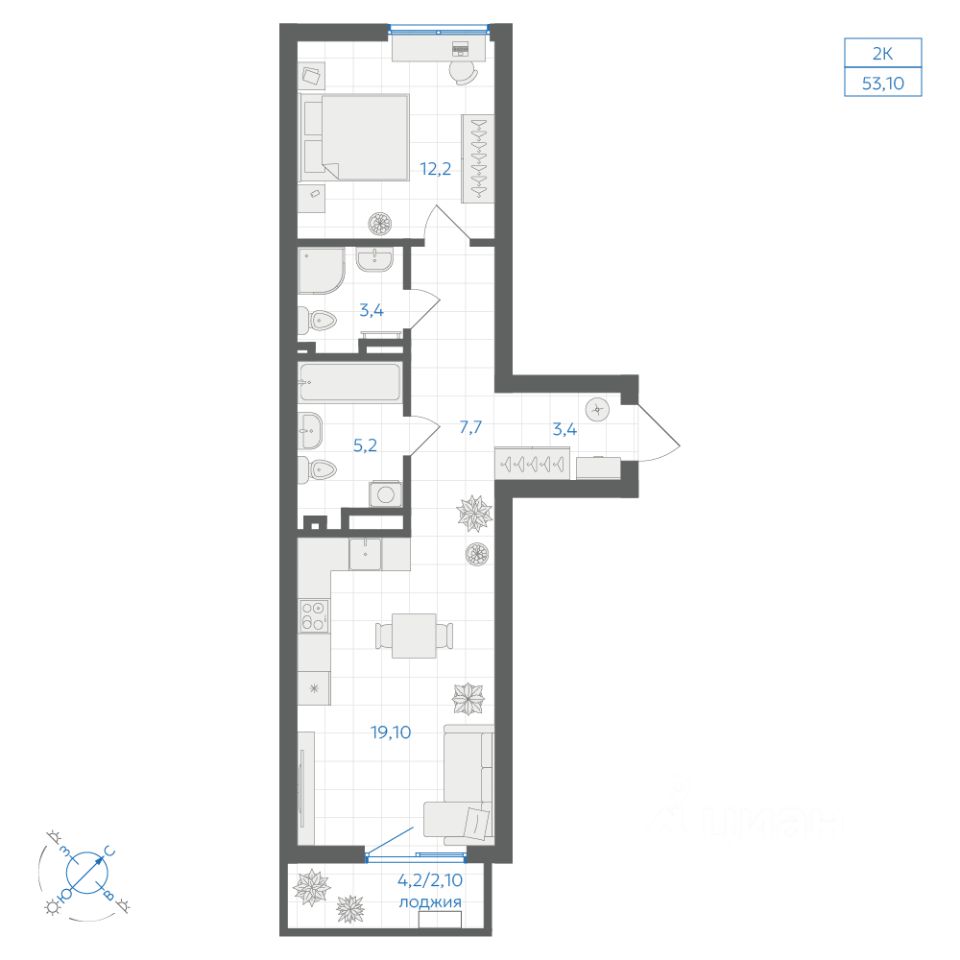 Общая площадь53,1 м2