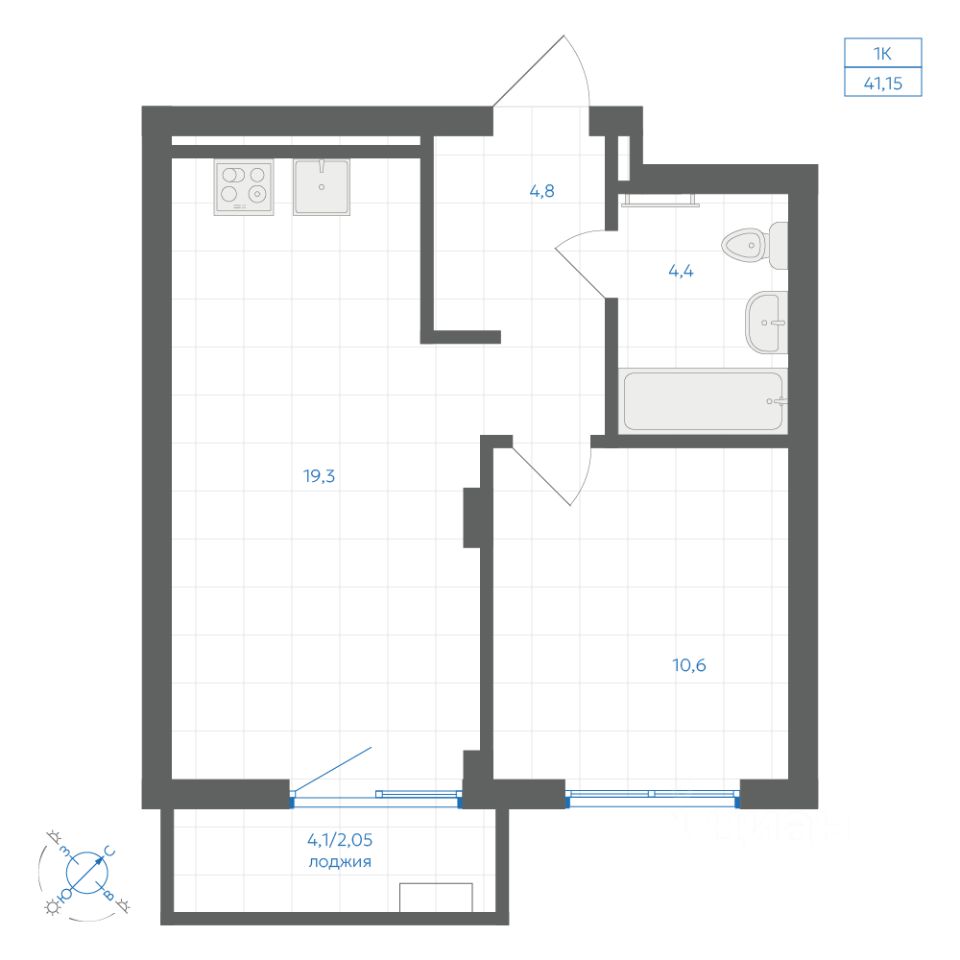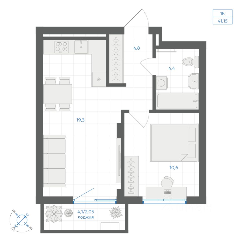 Общая площадь41,15 м2