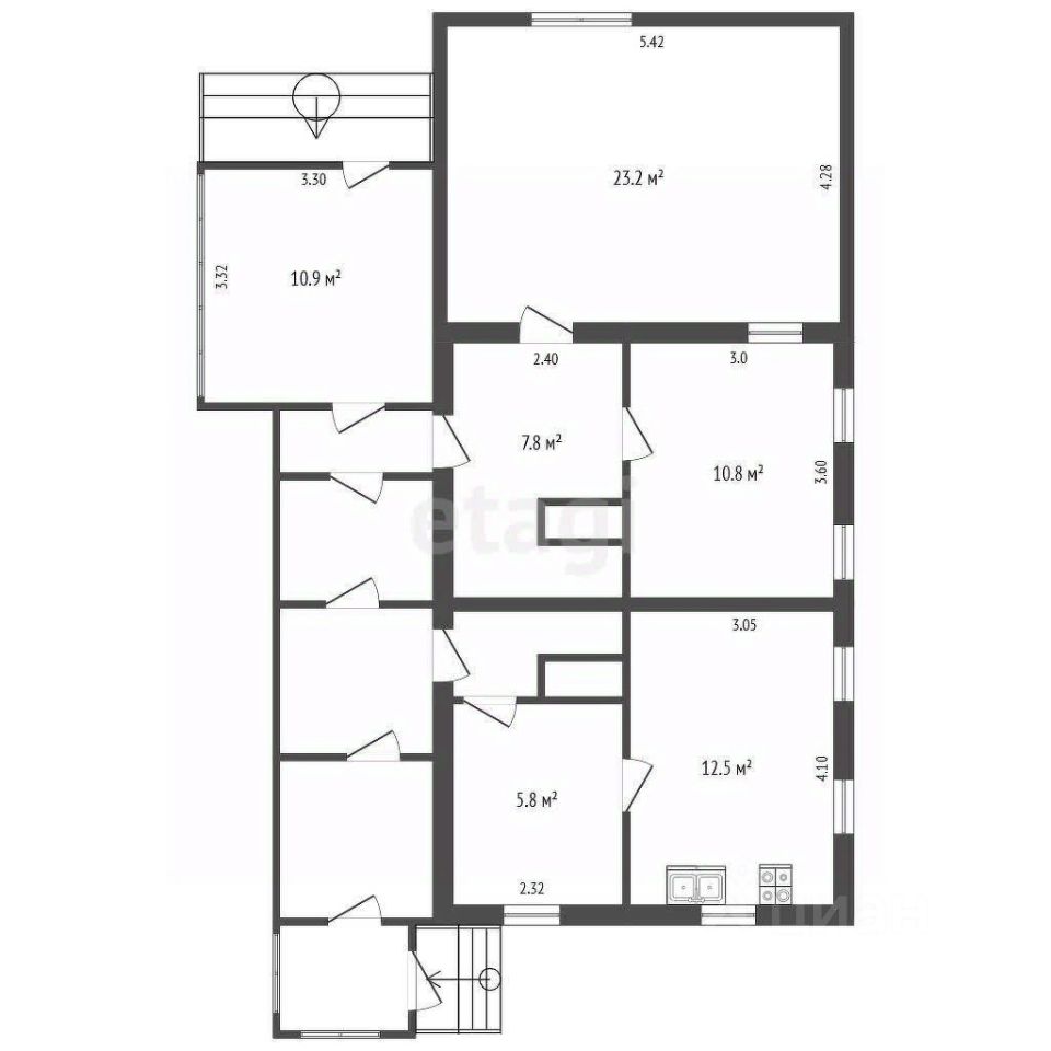 Дом перепланирован в студию общей площадью 19.8 квадратных метров, состоит из комнаты и совмещенного санузла и веранда.