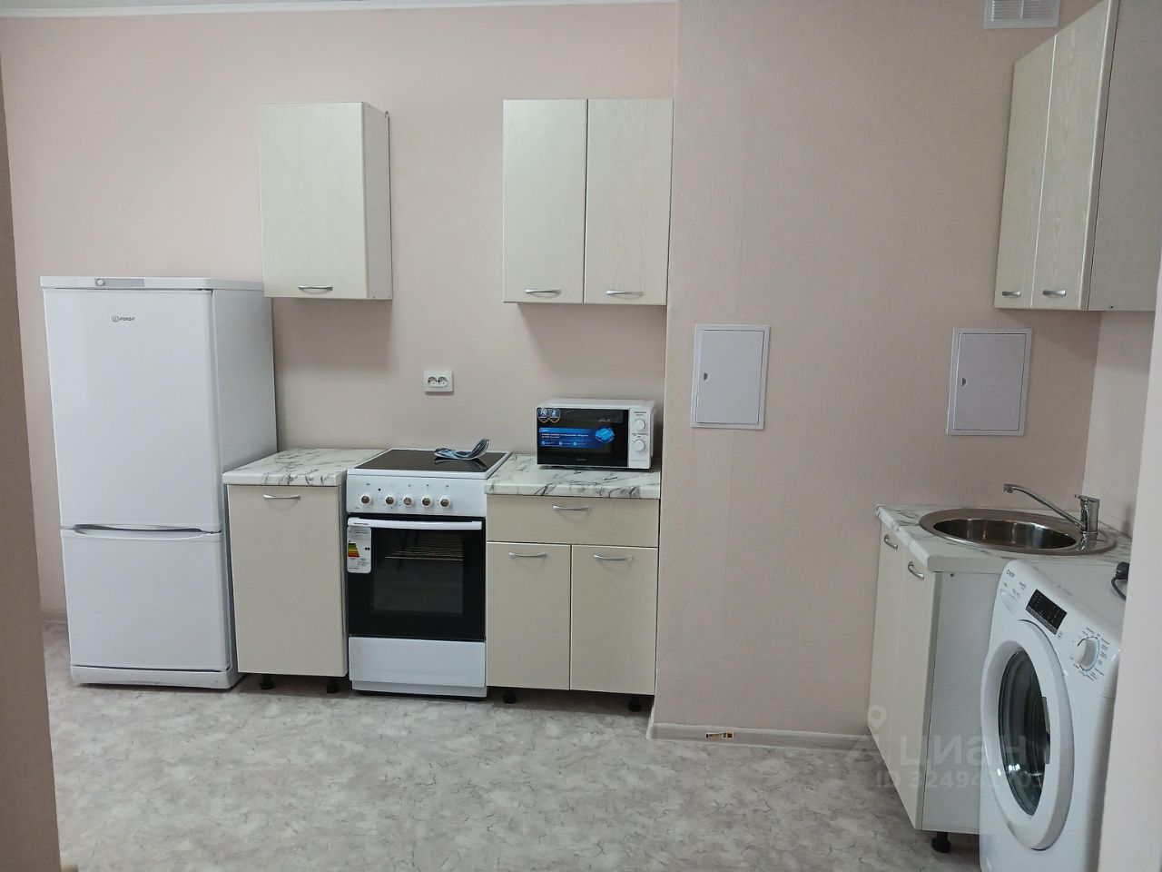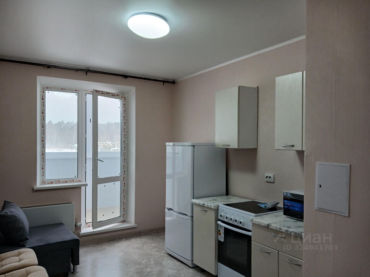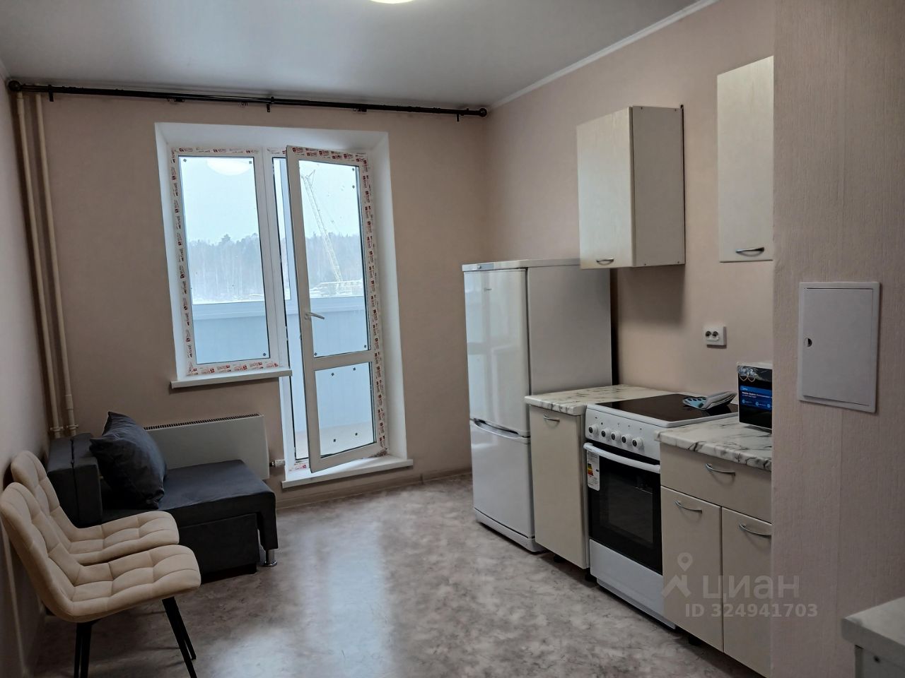 Новая квартира, с мебелью и техникой. Техника новая - пылесос, холодильник, микроволновка, электроплита(подключена), стиральная машина (подключена). Мебель новая-кухонный гарнитур, шкаф с зеркалом, диван раскладной, кресло раскладное.Комната отдельная. Отделка от застройщика: натяжной потолок, линолеум, обои под покраску, в санузле плитка, входная сейфовая дверь.
