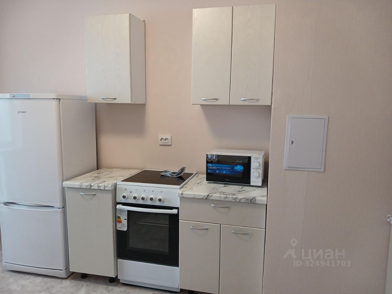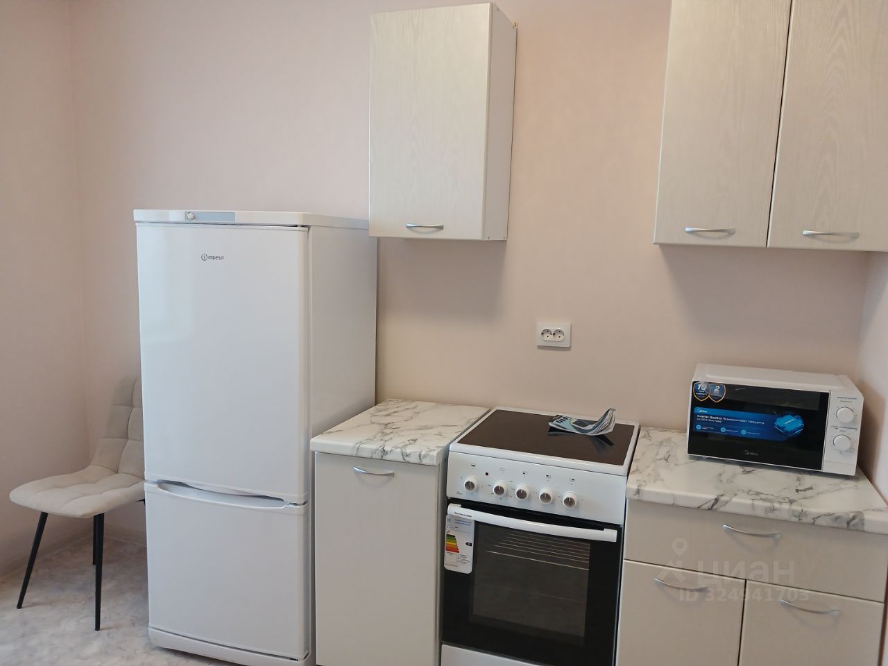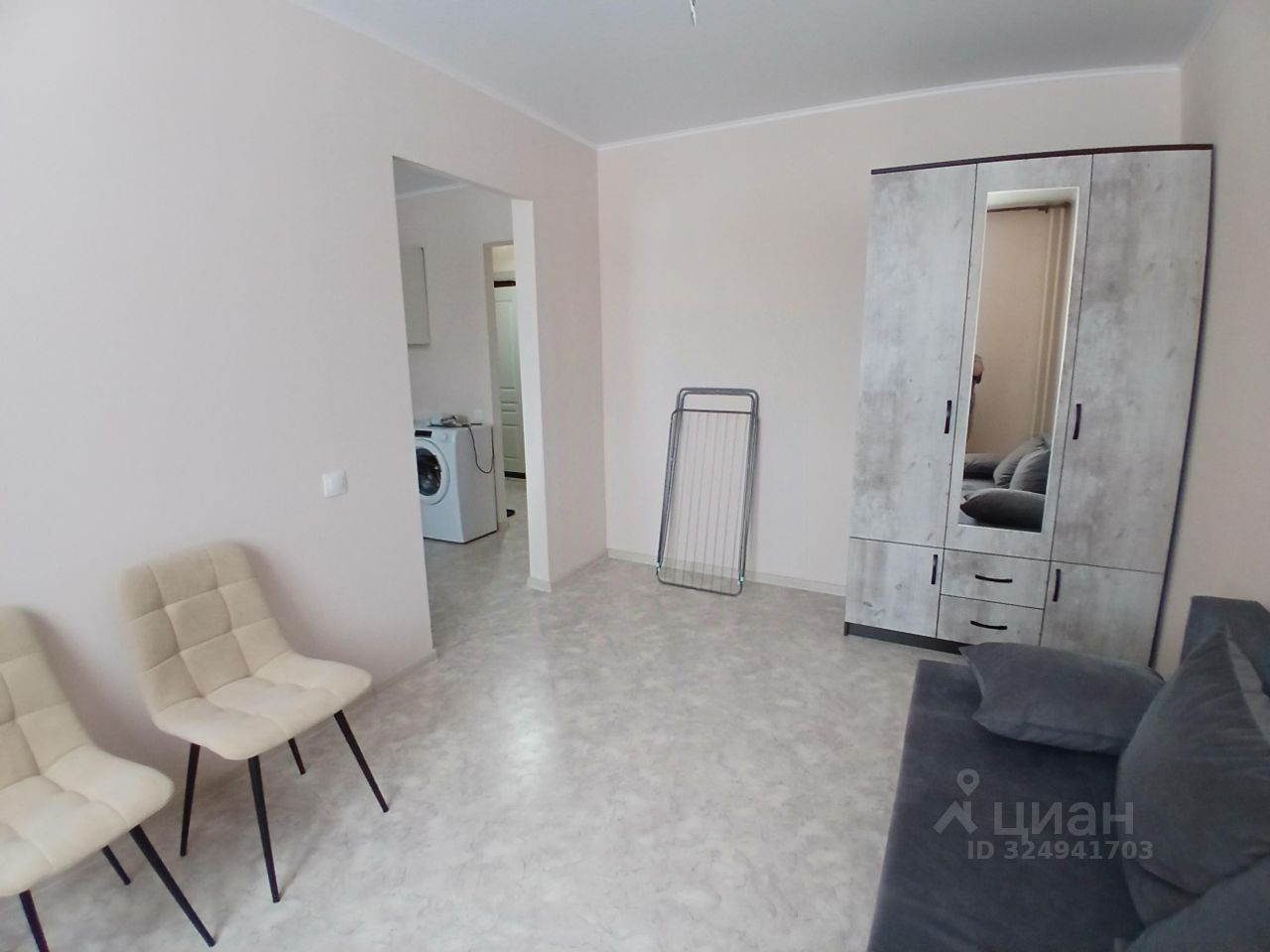 Новая квартира, с мебелью и техникой. Техника новая - пылесос, холодильник, микроволновка, электроплита(подключена), стиральная машина (подключена). Мебель новая-кухонный гарнитур, шкаф с зеркалом, диван раскладной, кресло раскладное.Комната отдельная. Отделка от застройщика: натяжной потолок, линолеум, обои под покраску, в санузле плитка, входная сейфовая дверь.
