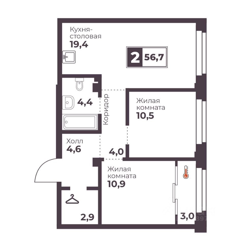 Продаётся 2-комнатная квартира в строящемся доме (Дом 1 (стр.) секция А, Б, И, К, Л), срок сдачи: IV-кв. 2027, общей площадью 56.7 кв.м., на 2 этаже. Новый жилой комплекс ''Голос Кашириных'' от группы компаний ''Голос. Девелопмент'' расположен по адресу: г. Челябинск, по ул. Братьев Кашириных.