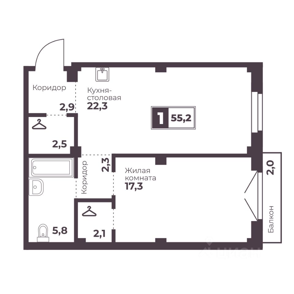 Общая площадь55,2 м2