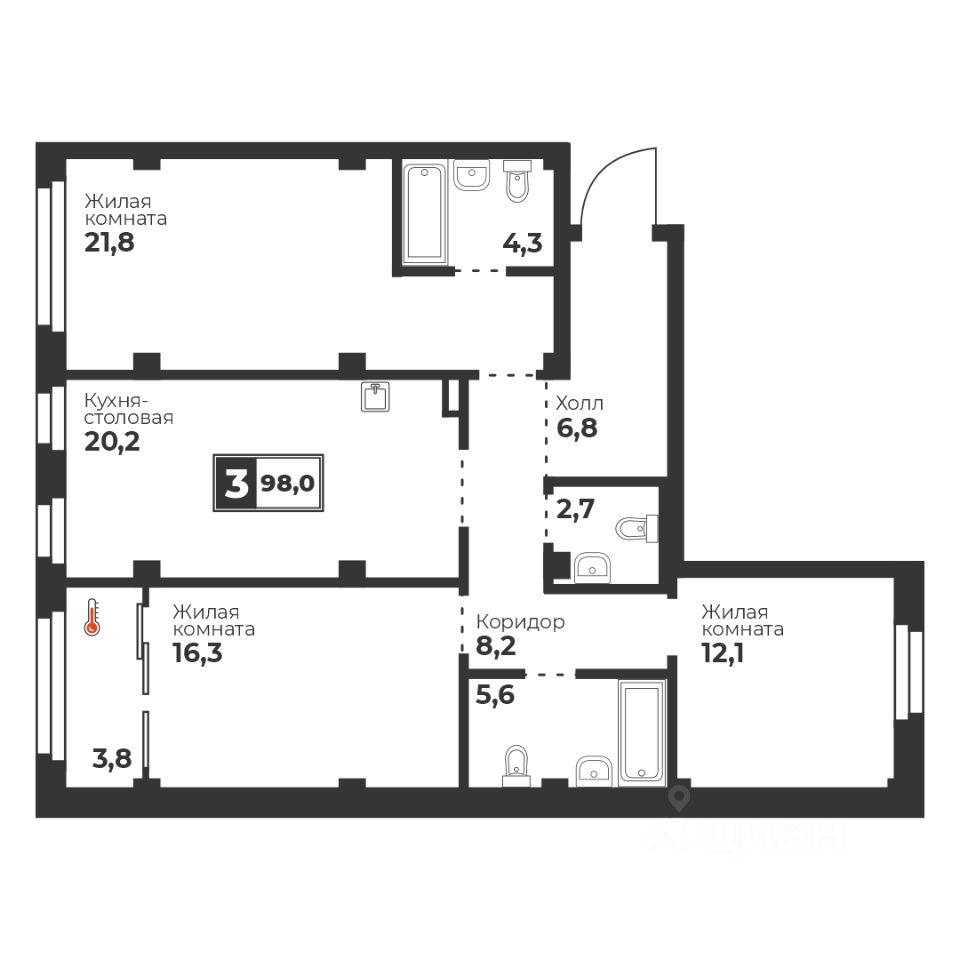 Общая площадь98 м2