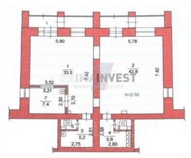 высота потолка 2,7 м., электрическая мощность 25 кВт, все коммуникации центральные, 2 с/у.
