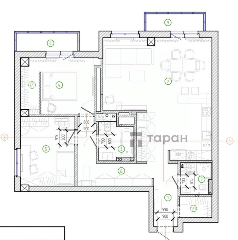 При необходимости есть возможность отделить третью спальню.