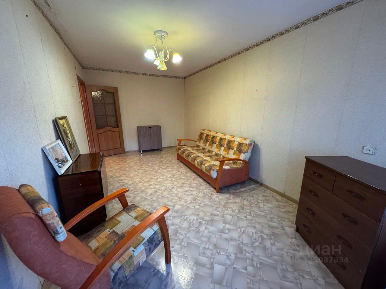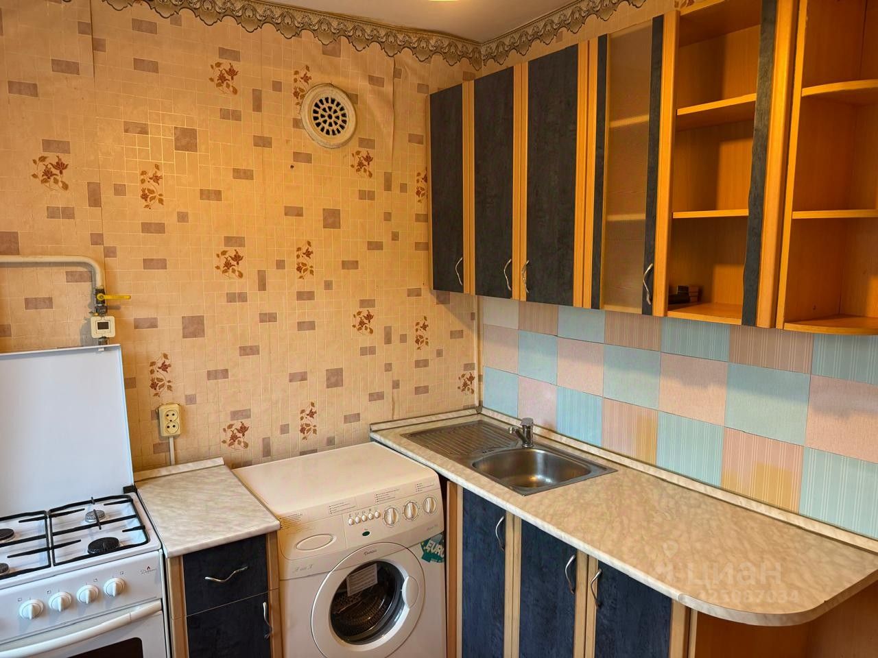 Что есть в квартире: диван, кресло, комод, стол раскладной в комнате, стол и табуреты в кухне, кухонный гарнитур, плита, стиральная машина.