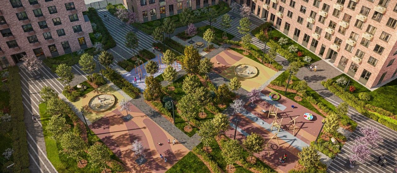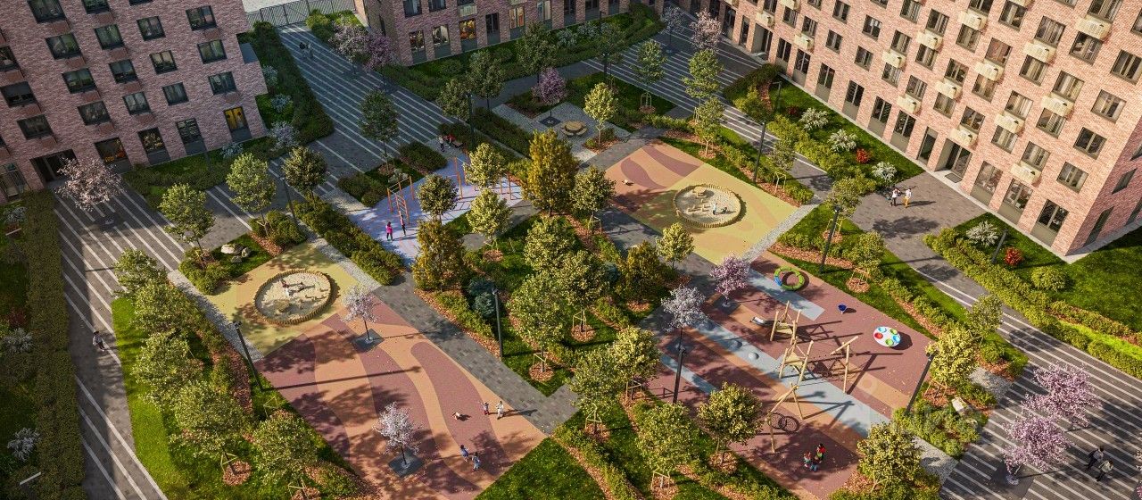 В каждом дворе будет парк - тихое приватное пространство для жителей, где красиво и уютно в любое время года и можно расслабиться после рабочего дня. Через весь квартал протянется широкий пешеходный бульвар с велодорожками, велопарковками, зонами для отдыха, детскими и спортивными площадками.