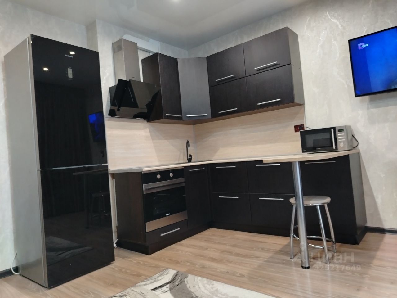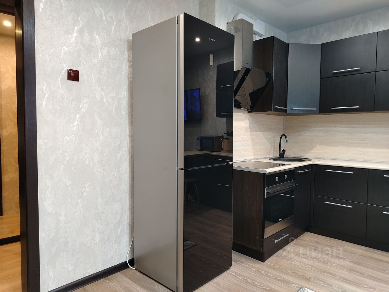 Остаётся кухонный гарнитур, в прихожей встроенный шкаф.