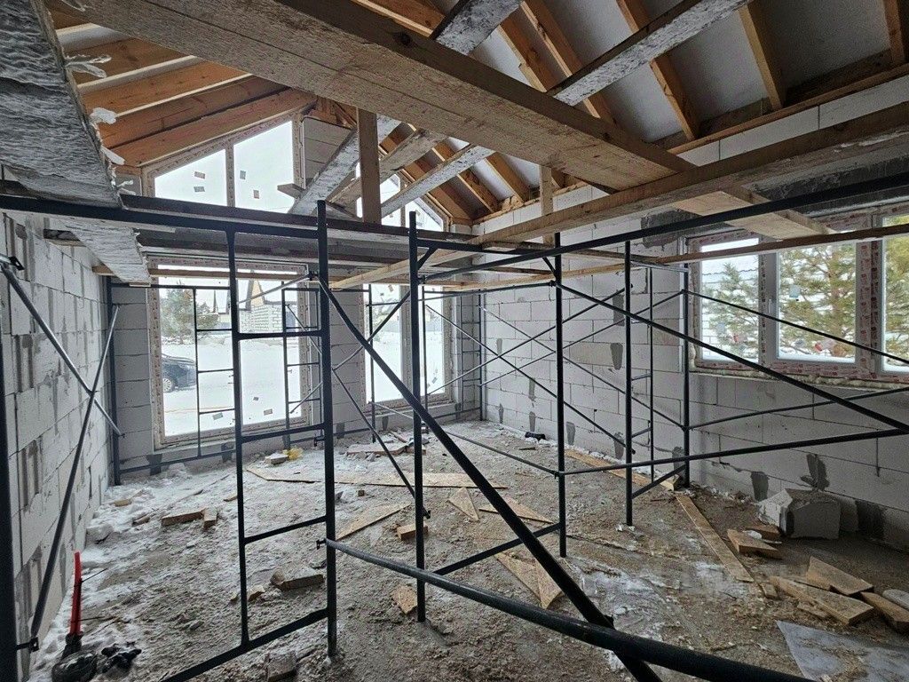 Продам дом в д. Круглое , ул. Юбилейная д. 40 Дом мансардного типа - 139,4 кв. м. (Процесс строительства , в процессе ввода в эксплуатацию) Высота потолка - 1 этаж - 3.30 и 4.80м. (кухня -гостиная + 2 спальни). - 2 этаж - высота 4м. и 2 комнаты -предусмотрен проем для поворотной лестницы размером 200х320 см - дверь с термо-разрывом - Окна из профиля 70 -А класса с мульти стеклопакетом с энергосбережением Крыша и перекрытия 200х50 на фото запечатлён процесс к завершению строительства. Ситуация меняется ежедневно. До конца недели (27.12) все будет готово.