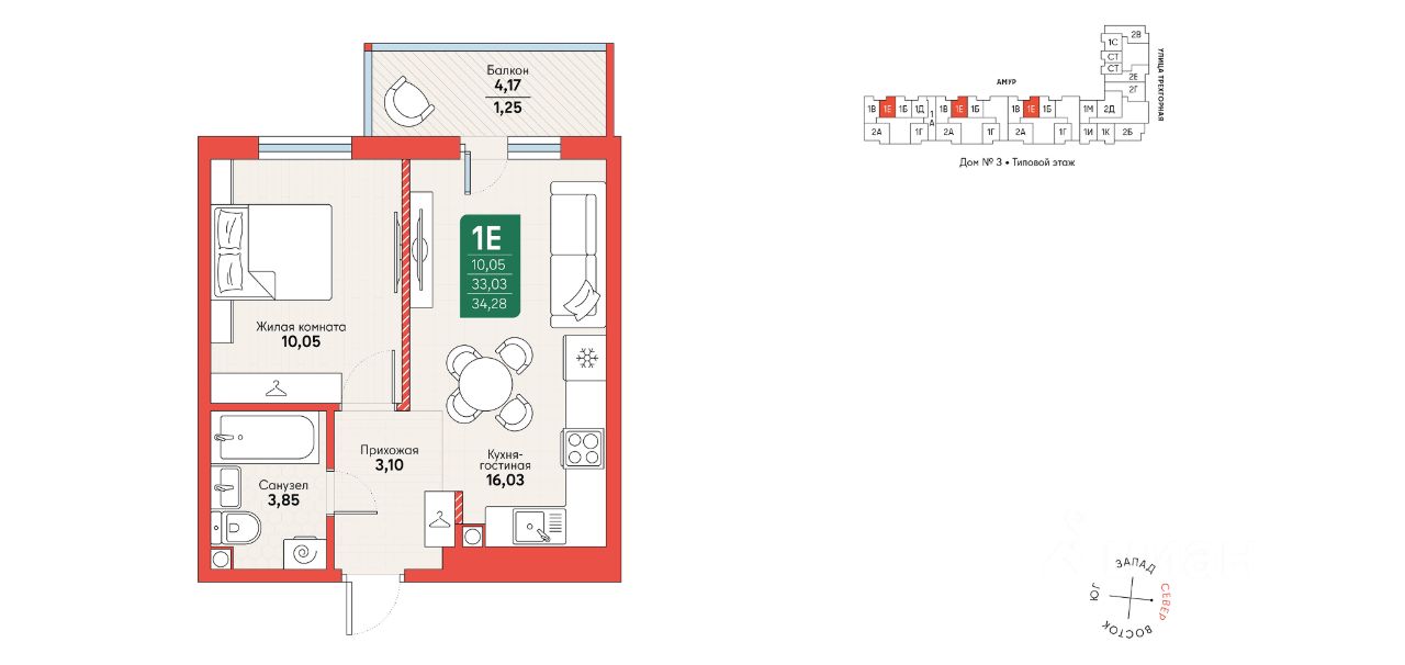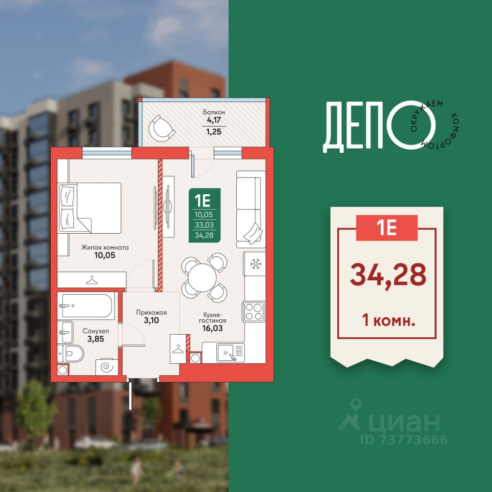 Общая площадь34,28 м2